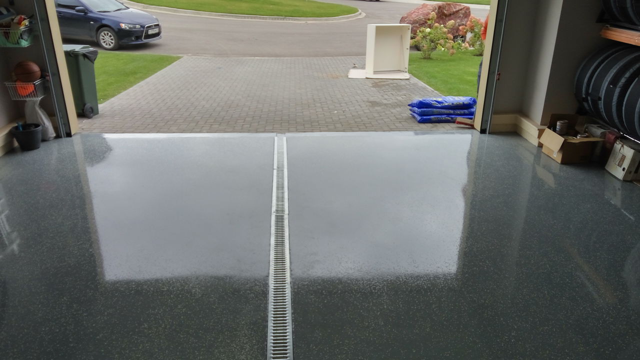 La pendiente permisible de la regla no es más del dos por ciento (hasta dos cm por metro de longitud), mientras que el punto más bajo se encuentra en la rejilla o puerta.Los espacios de compensación se realizan a lo largo de las paredes, postes y otras partes sobresalientes, esto es especialmente importante en espaciosas salas de garaje (más de 40-60 metros cuadrados). Se crean espacios en el proceso de realizar la regla usando una cinta o perfil de dilatación.