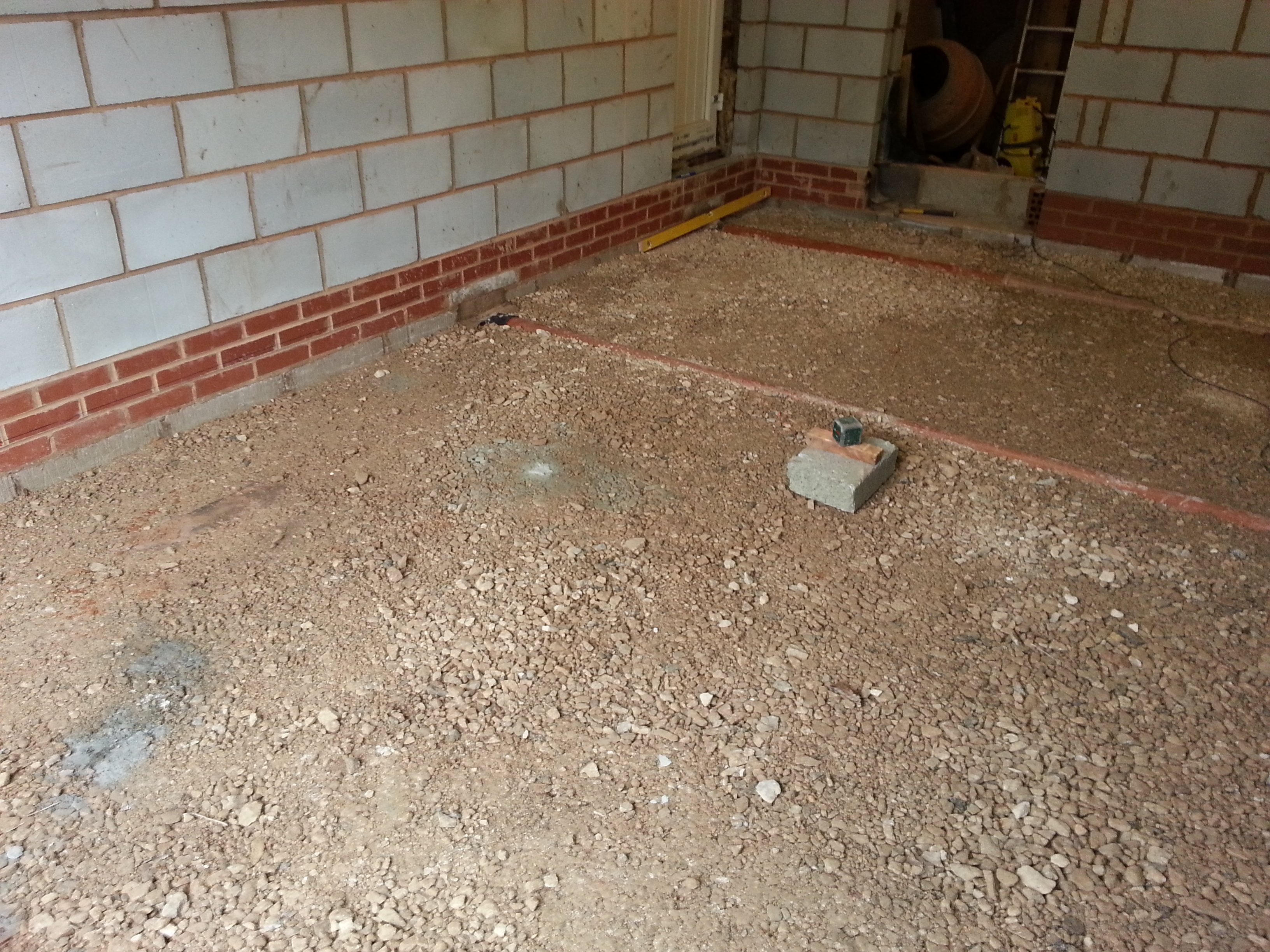 La capa subyacente es necesaria para que la carga en el suelo sea uniforme. Su grosor es de seis a ocho cm, el material es arena, grava, grava. La regla nivela la superficie "rugosa", su grosor es de aproximadamente 40-50 mm, si hay tuberías u otras comunicaciones en el piso, la capa sobre ellas debe ser de al menos 25 mm. Como capa, se utilizan arena, hormigón, betún, mortero de cemento, varias opciones de aislamiento térmico, materiales impermeabilizantes. El grosor de esta capa es de 10-60 mm. Luego proceda a terminar con cualquier material seleccionado.