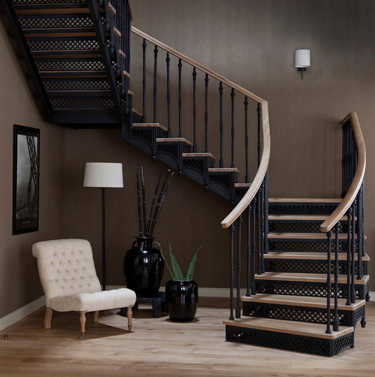 La principal ventaja de este material es la ductilidad. La escalera de metal puede tener cualquier forma, incluso la más compleja.La resistencia del metal también está a la altura.
