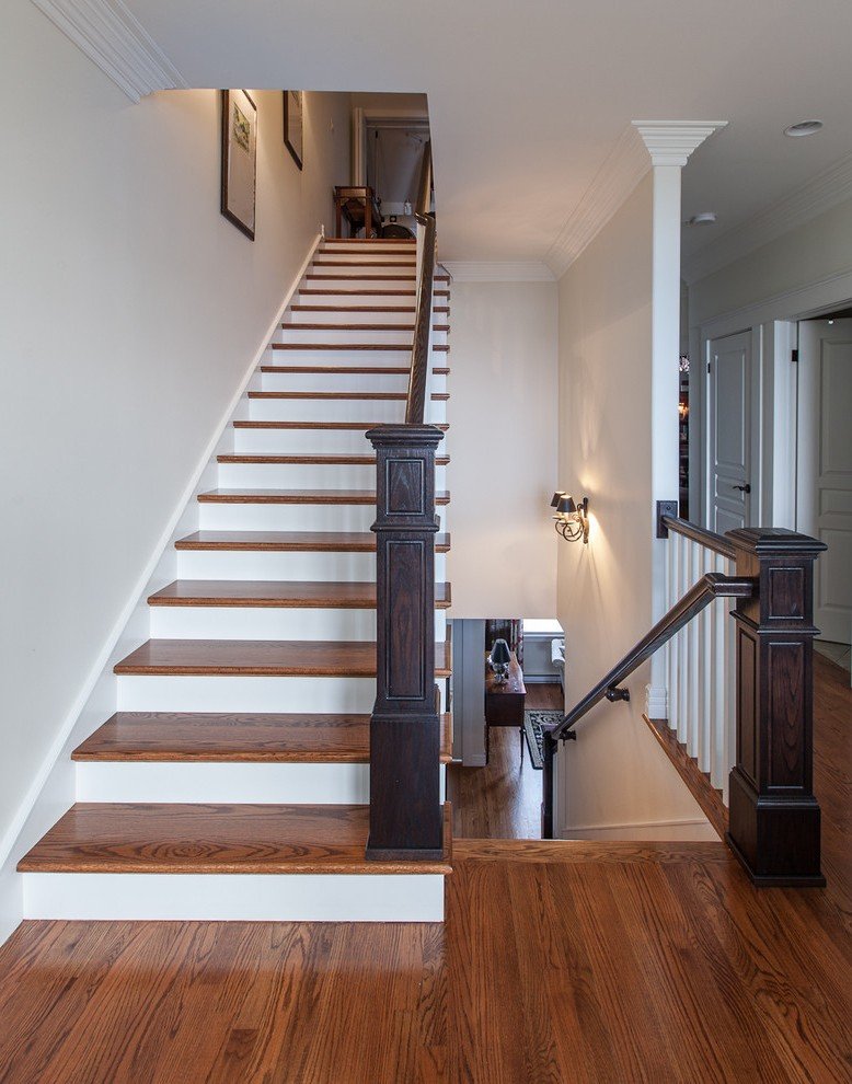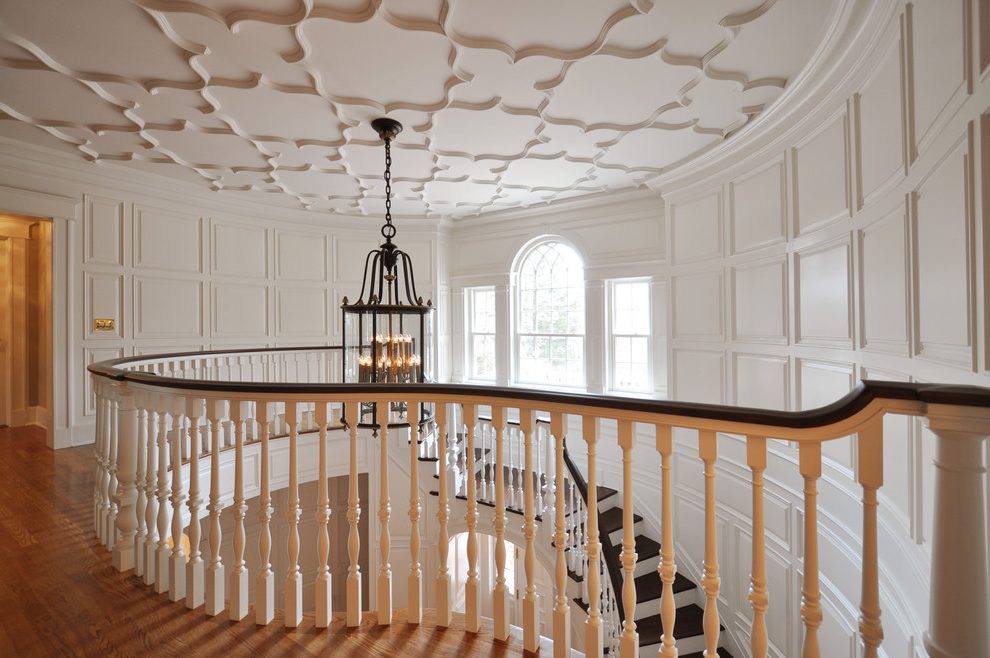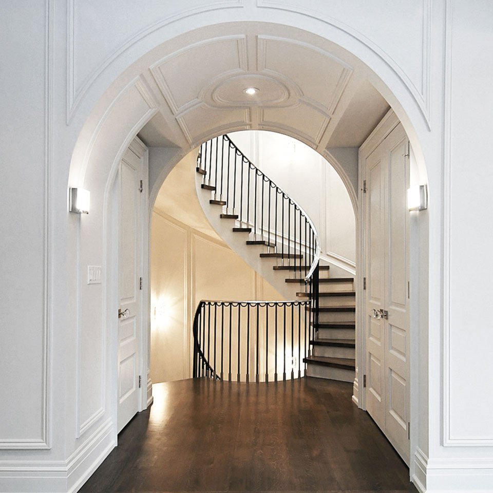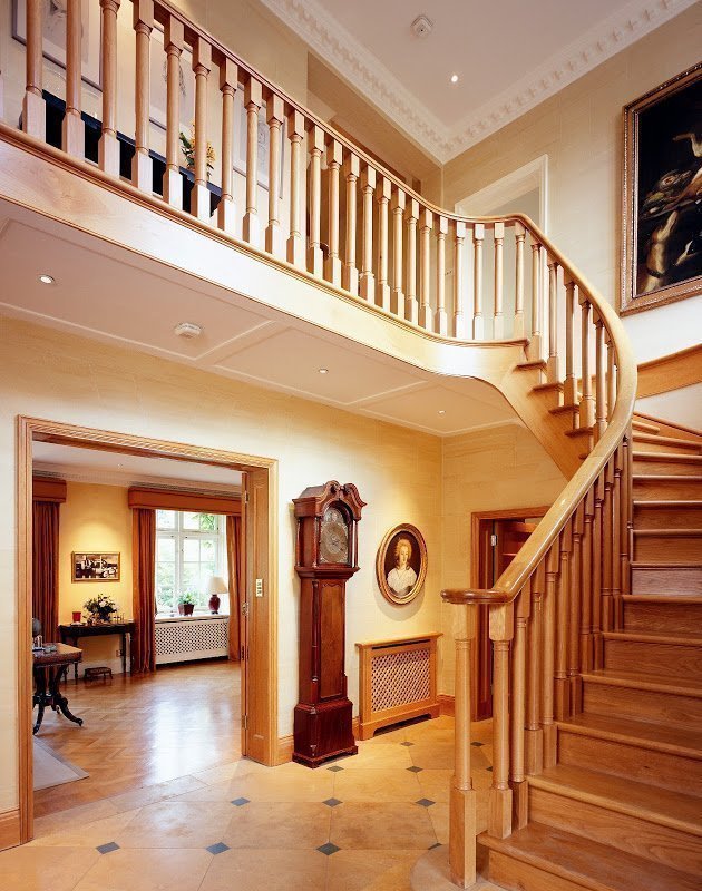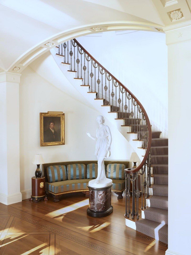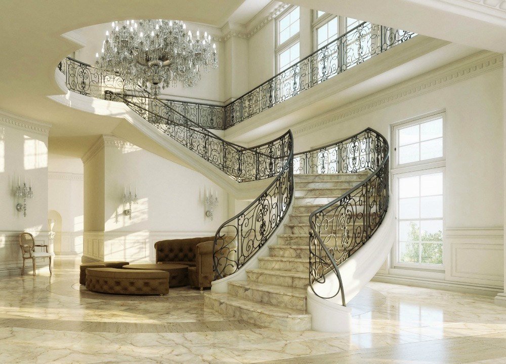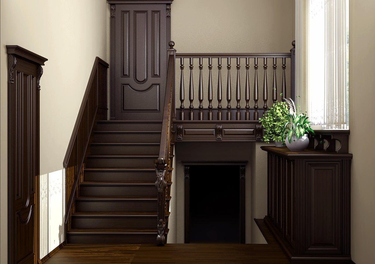 Clásico y neoclásico. Las características son el diseño de escaleras con mármol o granito. Decoraciones moldeadas se utilizan para decorar las paredes y el tramo. La misma moldura de estuco se usa para cercas. La escalera con escalones de madera se ajusta al concepto de estilo clásico exquisitamente sobrio.