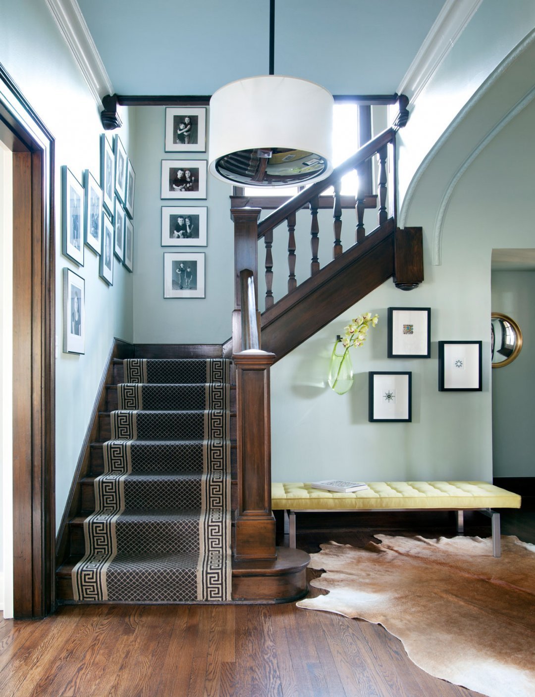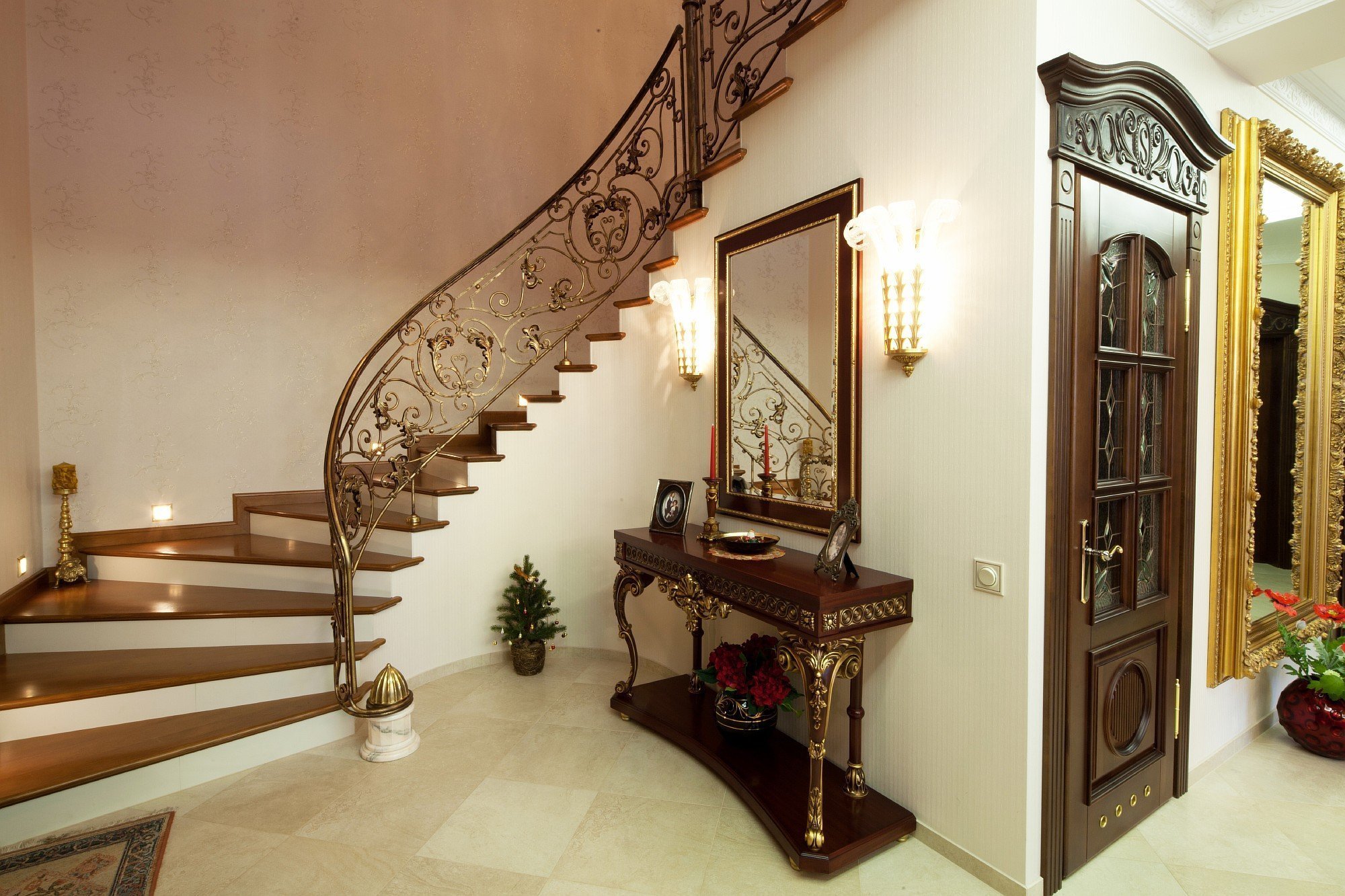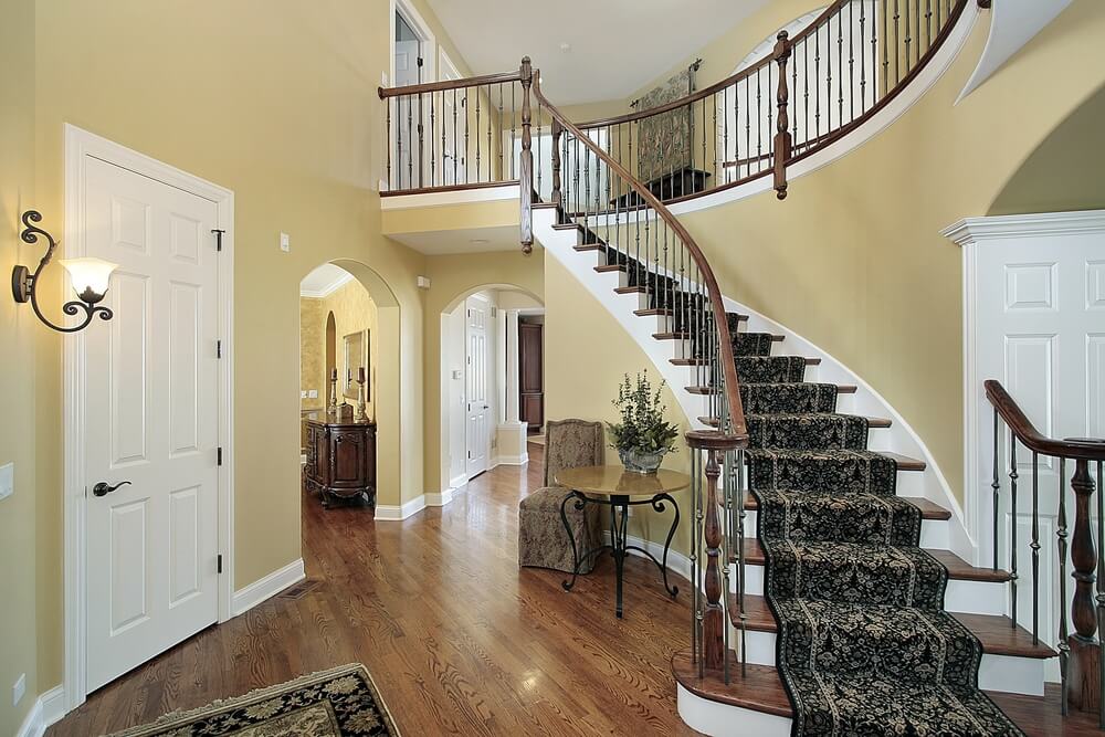 Diseño y estilo. Depende de la ubicación de las escaleras en el vestíbulo y de la decisión general de diseño.