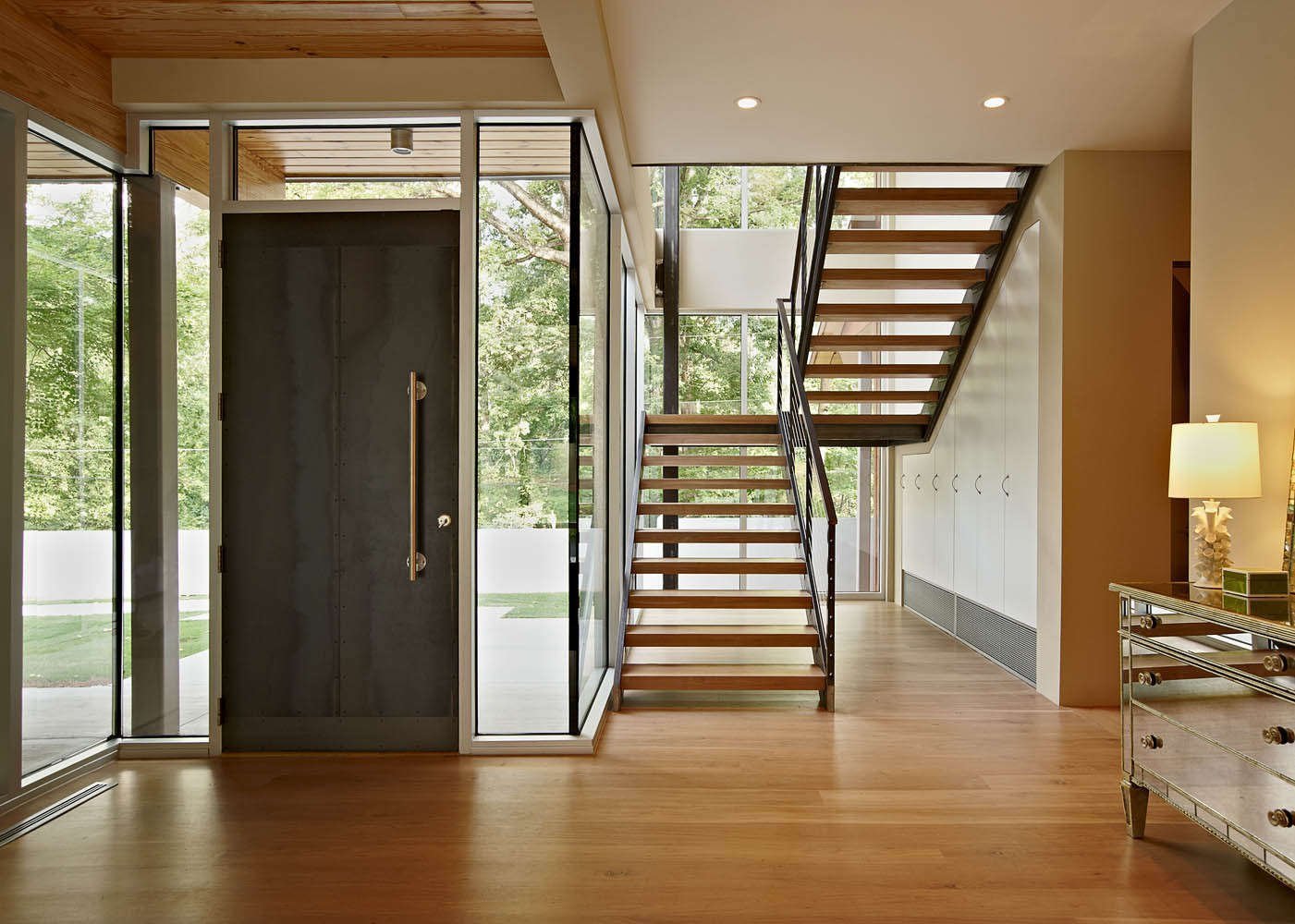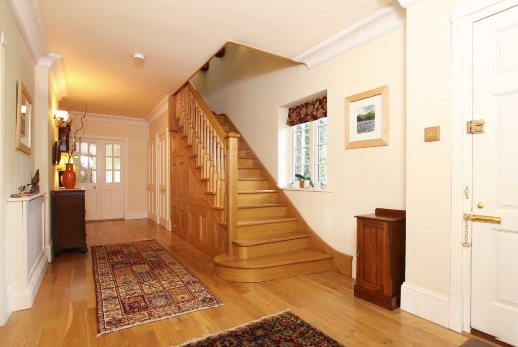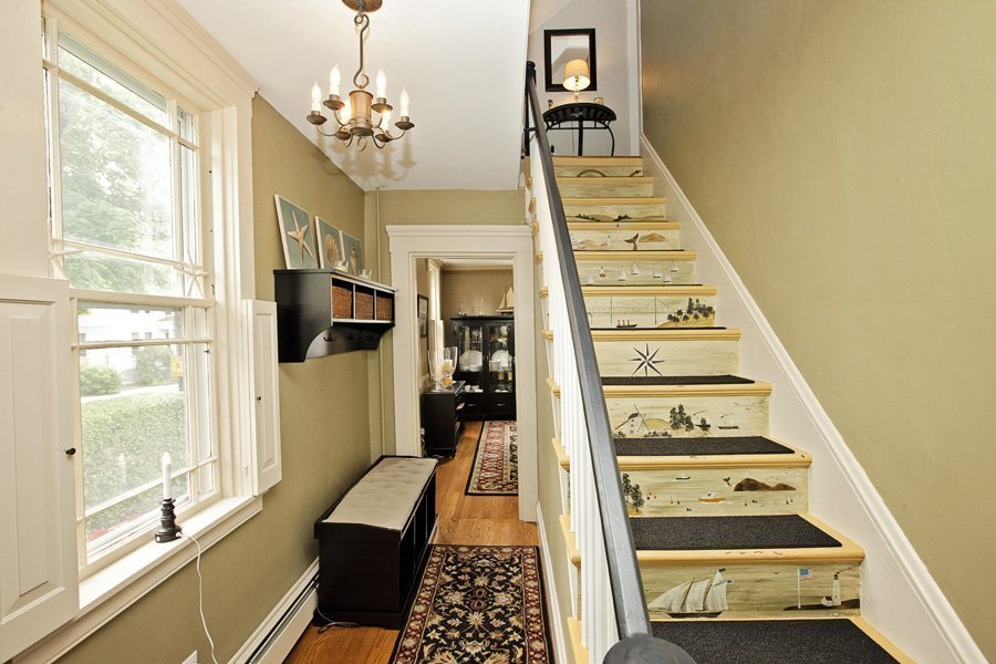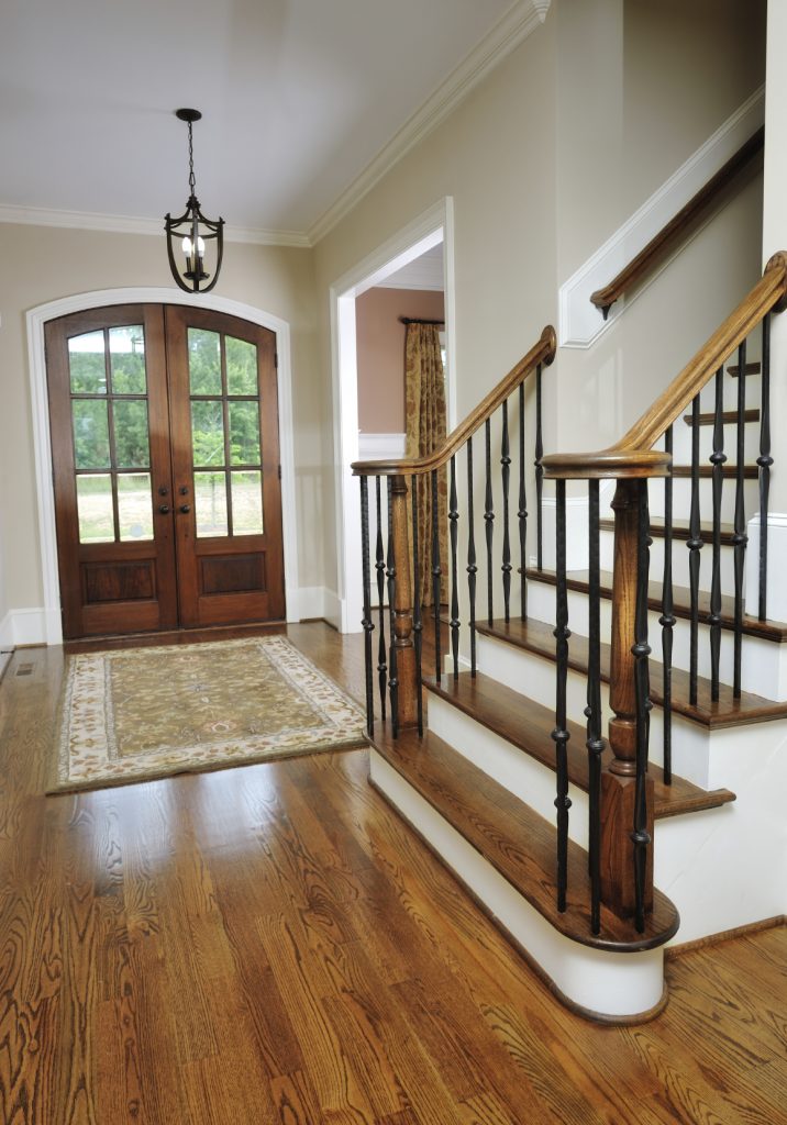 Diseño y estilo. Depende de la ubicación de las escaleras en el vestíbulo y de la decisión general de diseño.