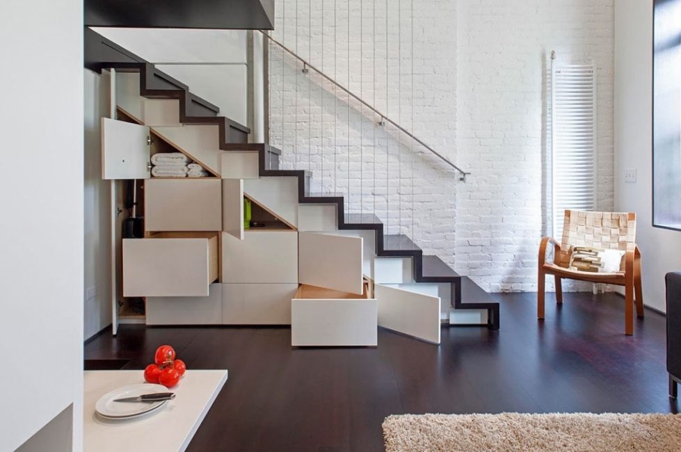 A menudo, los nichos formados debajo de las escaleras ocupan un espacio considerable, conveniente para almacenar cosas o una litera temporal.