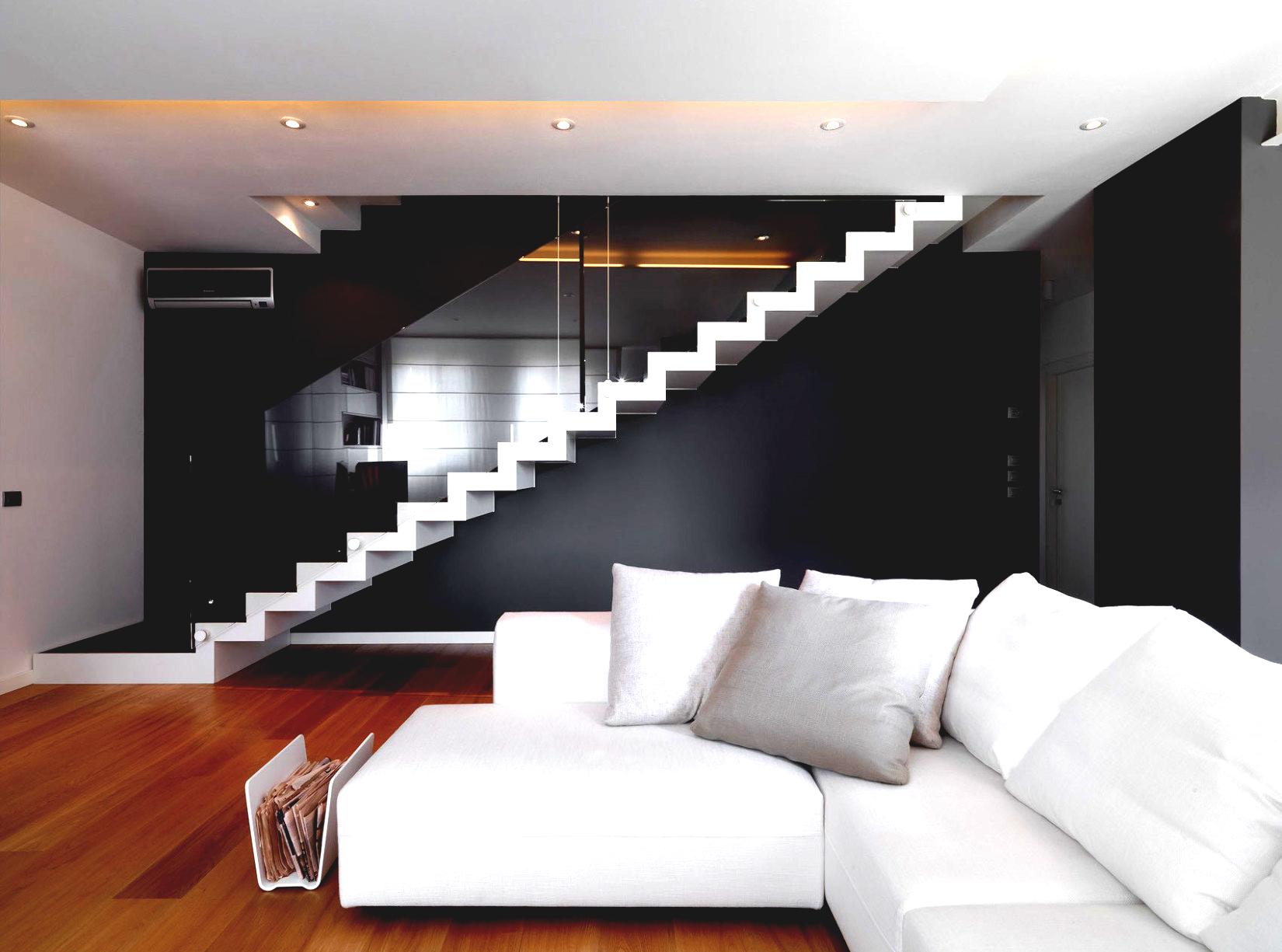 El color de acento de diseño de escalera lacónica encaja en los cánones del minimalismo.