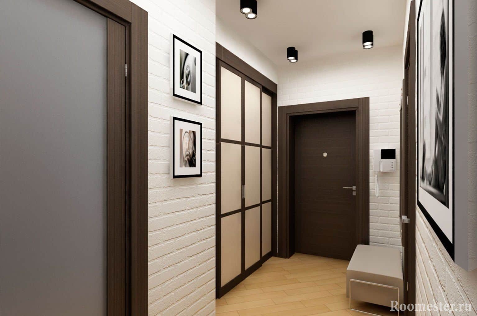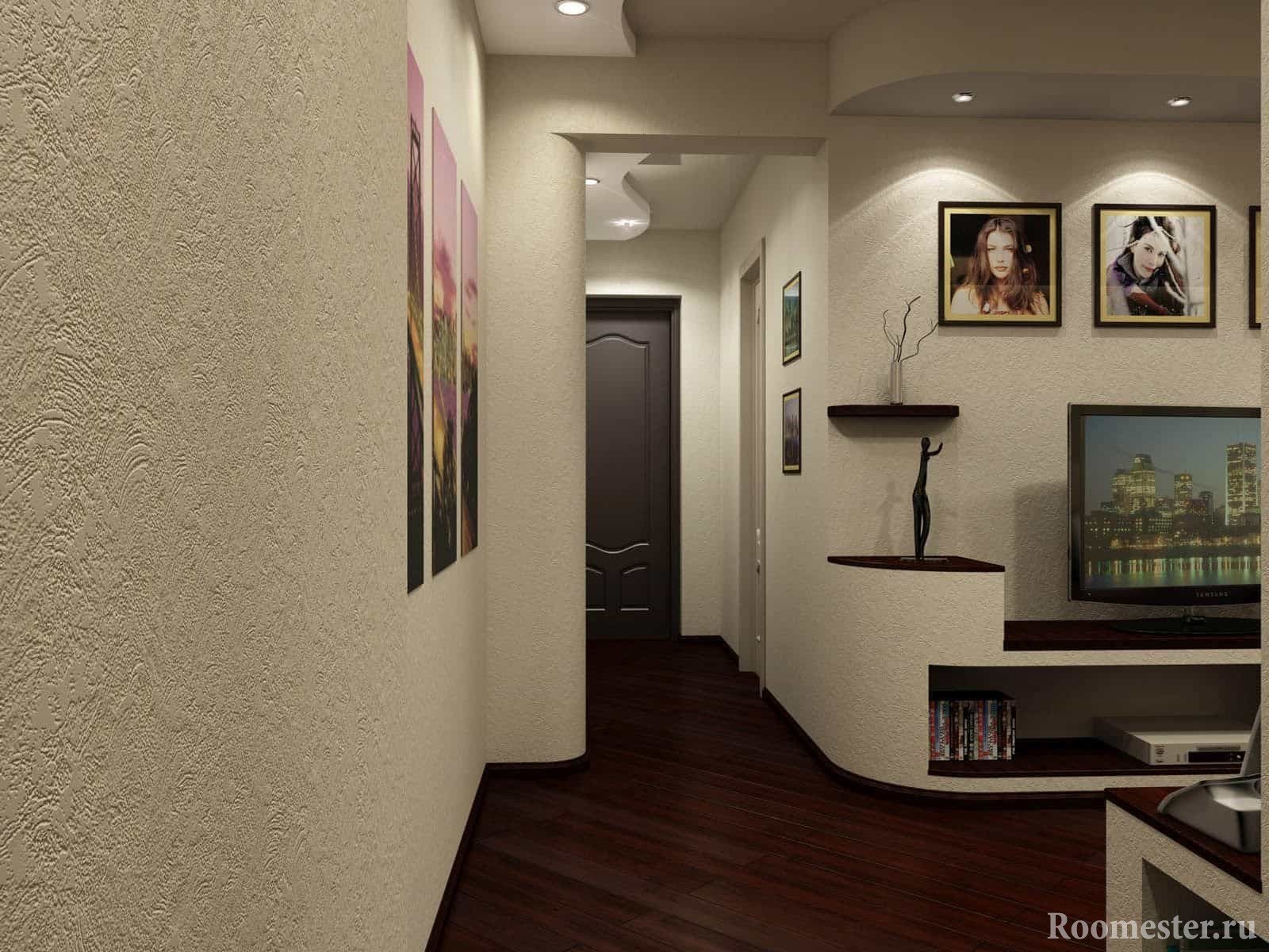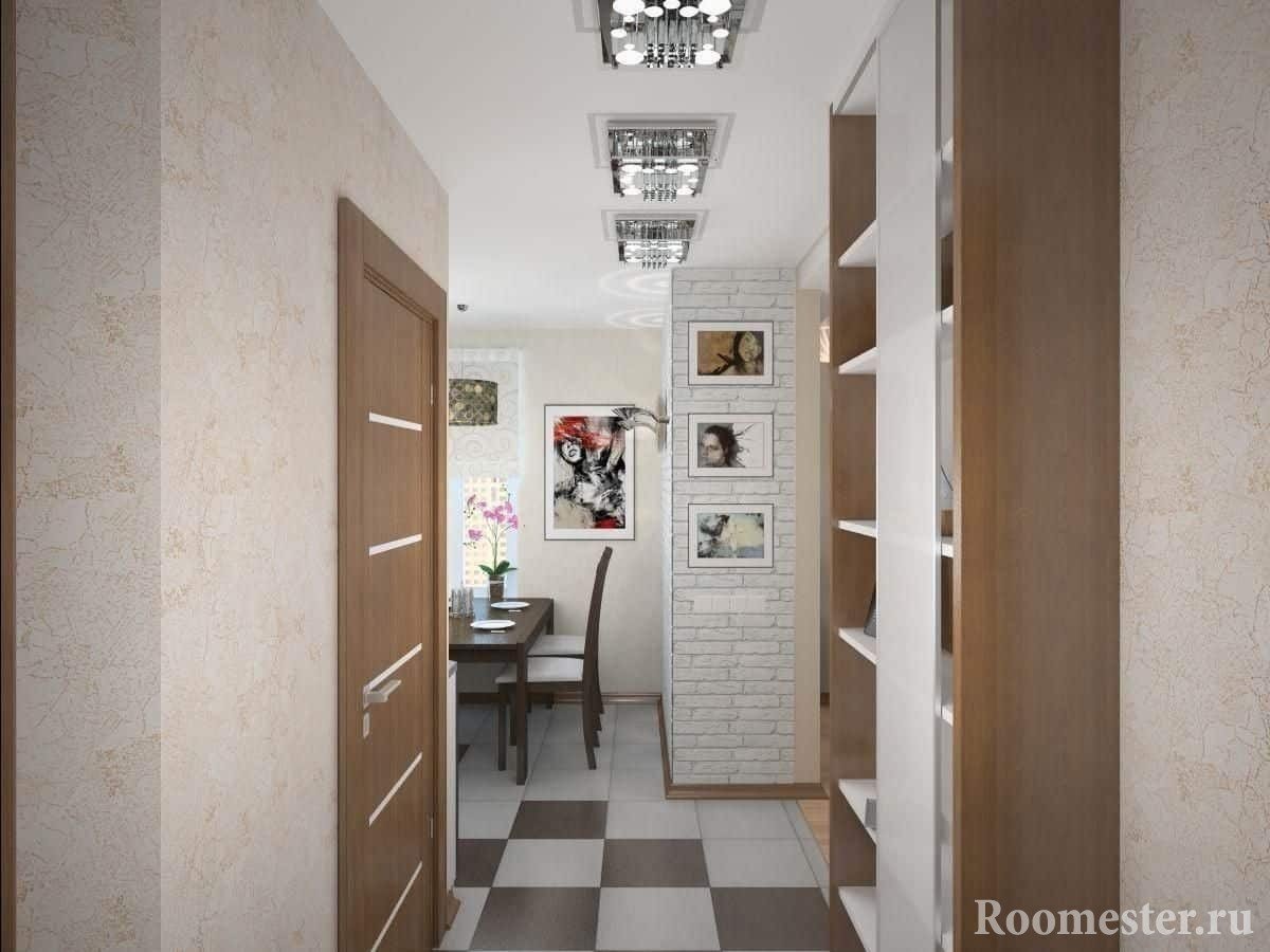 Las paredes del corredor se pueden decorar con pinturas, retratos. Es aconsejable elegir algunos pequeños.