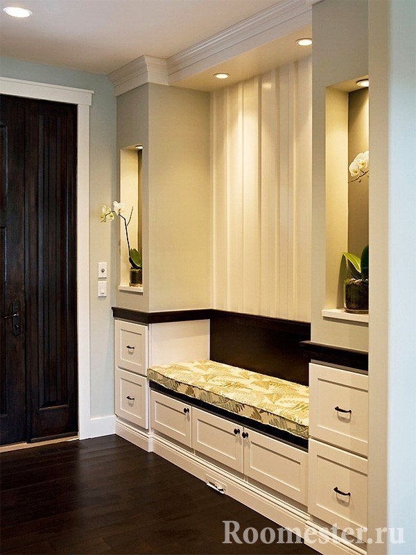 "Caja". Es un diseño típico en Jruschov, sin embargo, se pueden encontrar en edificios modernos. Se caracteriza por un área pequeña, muchas puertas. Es bastante difícil colocar un conjunto de muebles en tal hall de entrada;