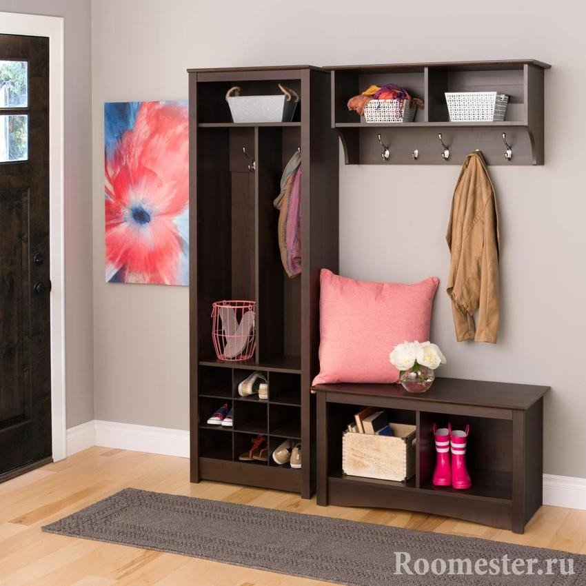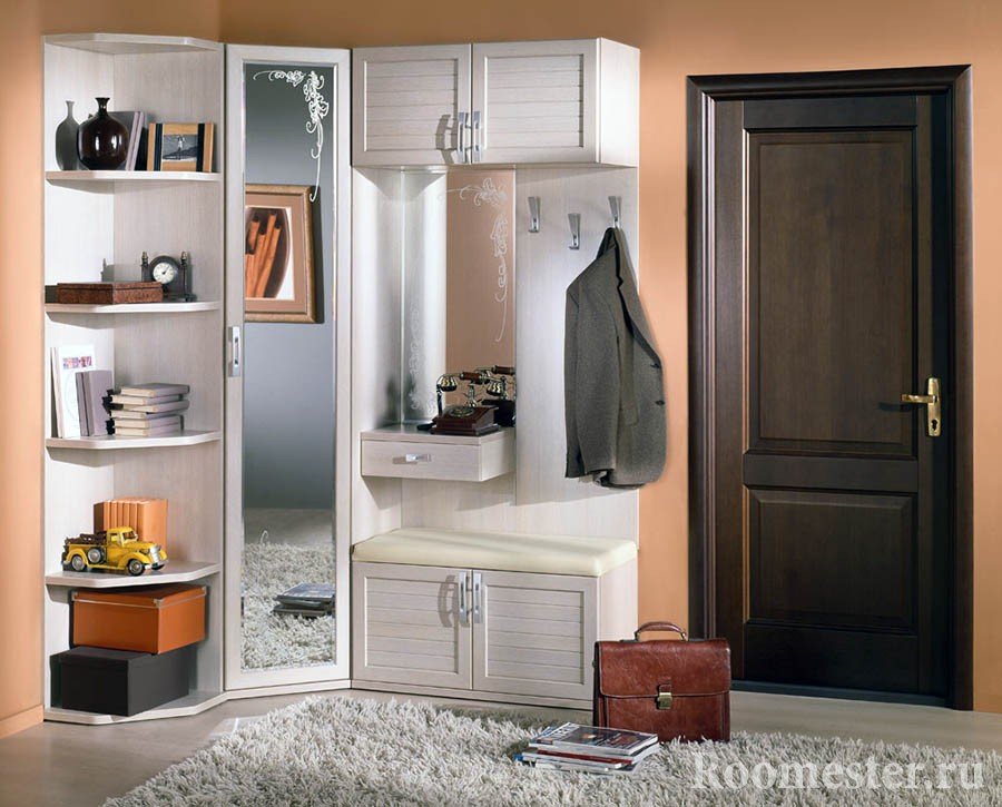 Un armario deslizante es casi la mejor opción para lo que puedes pensar aquí. Sin embargo, debe elegir entre precio y calidad. Los productos de tamaño personalizado son muy caros, mientras que los típicos dejan un espacio en la parte superior donde a todas las criaturas vivientes les gusta instalarse, sin mencionar el polvo. También vale la pena prestar atención a los diseños modulares de colores oscuros o claros. Es mejor, por supuesto, usar tonos claros de madera natural. Si en el pasillo hay un espacio desastrosamente pequeño, vale la pena considerar la opción con un espacioso gabinete de esquina.