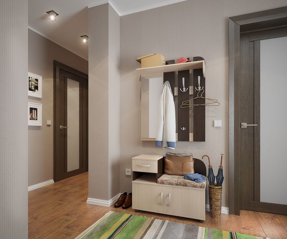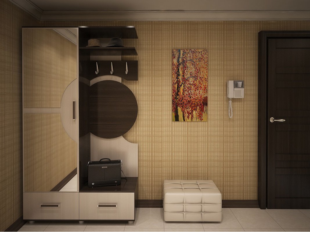 La entrada de color marrón claro se verá bien en el corredor iluminado.Ella enfatiza fácilmente la comodidad, crea un ambiente hogareño acogedor.