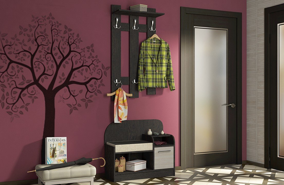 Al elegir muebles adecuados para un pequeño pasillo-pasillo, se debe dar preferencia a los productos combinados. Por ejemplo, una banqueta con una percha y un estante para sombreros. Al determinar exactamente qué elementos de un auricular para pasillo necesitan los propietarios, la contabilidad de los productos que almacenarán en esta parte del apartamento también ayudará a: