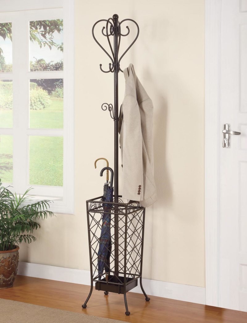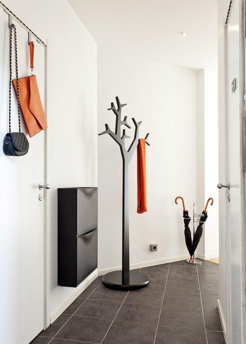 La elección de un colgador o colgador de piso debe basarse completamente en el espacio no reservado para él, el estilo de diseño de un corredor de tamaño pequeño. En un pasillo pequeño, la mejor solución sería instalar un modelo de piso combinado con un banco. Dicho módulo será conveniente, multifuncional y adecuado para Jruschov y otros apartamentos de pequeño tamaño. Las perchas colgantes pueden dar al interior acabado simplicidad y gran lujo y elegancia. Por ejemplo, en Provenza, serían apropiadas las perchas colgantes de madera pintadas en blanco.Pero las perchas forjadas (combinadas con un banquete o no) serán un complemento competente para el loft o el clásico. En un interior moderno y urbano, puede usar los modelos completos de Ikea. Las perchas completamente abiertas de Ikea se complementan con varias cestas extraíbles, estantes para guardar zapatos. Esta opción con pequeñas dimensiones le permite equipar prácticamente incluso el corredor más pequeño.