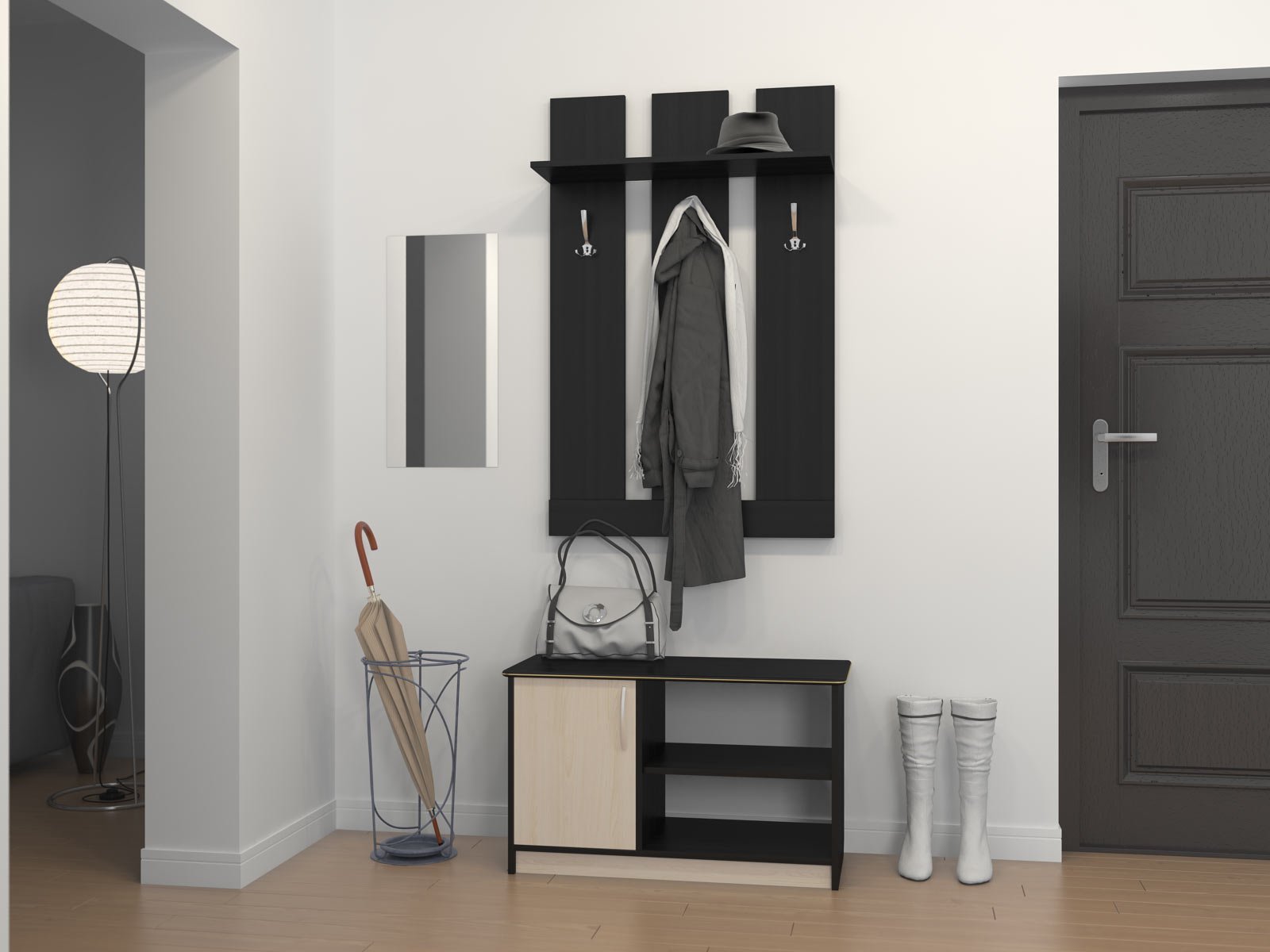 para prendas de vestir exteriores, accesorios, sombreros y zapatos: armario con todos los compartimentos posibles o una percha separada con un estante y un estante para zapatos;