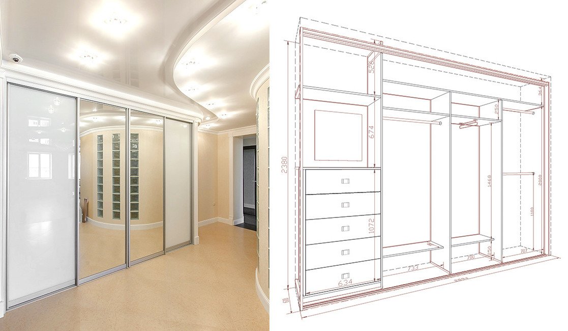 Los armarios empotrados del tipo "compartimento" están hechos a medida, de acuerdo con las dimensiones y la configuración de la habitación. Se distinguen por tales parámetros: