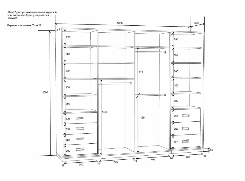 Al planificar el contenido interno, tenga en cuenta que los estantes y otros elementos no deben ser excesivamente gruesos, anchos, ocupan mucho espacio.