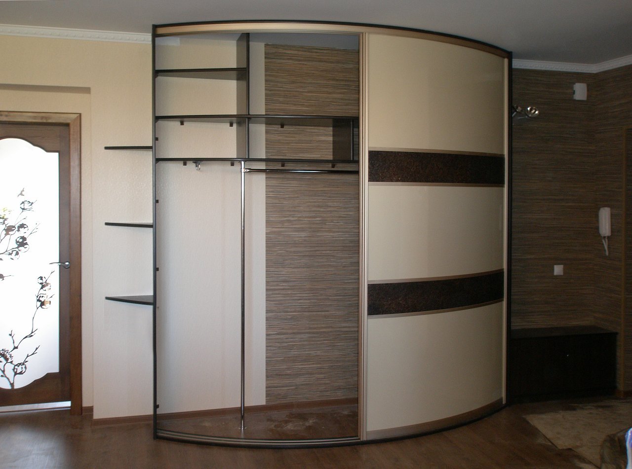 radial: montado en una esquina, con menos frecuencia, en una pared, la parte frontal se hace redonda, convexa o cóncava. El producto es difícil de fabricar e instalar, porque el costo será ligeramente mayor que para las opciones más simples;