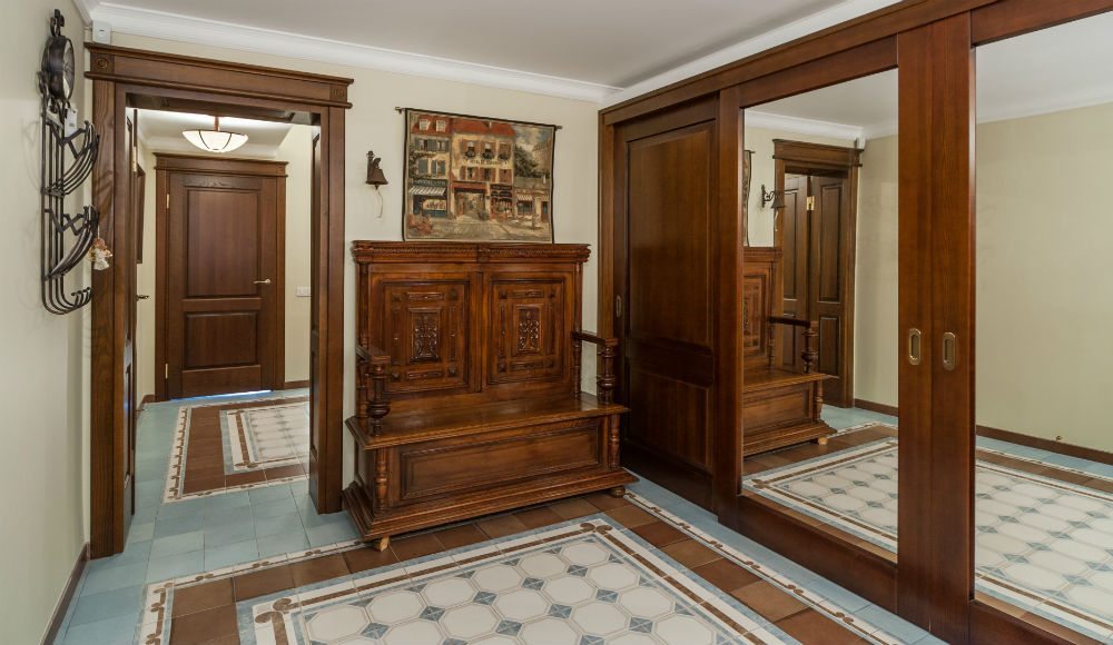 Las razas caras como la caoba, el cedro y el wengué se usan solo para diseñar interiores de élite. Más a menudo se encuentra su imitación de alta calidad, que solo un especialista puede determinar, así como el acabado de la chapa.