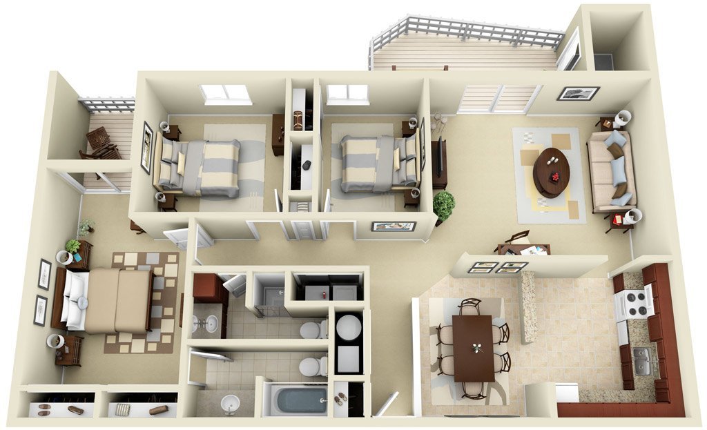 La etapa final del trabajo creativo sobre la transformación del interior. La ventaja de la visualización volumétrica es la capacidad de ver cada habitación desde cualquier ángulo con gran detalle. Al desarrollar ilustraciones en 3D, todos los dibujos acordados previamente, los planes para la colocación de todos los objetos y la iluminación se tienen en cuenta. Por cierto, es una imagen tridimensional que puede dar una imagen completa de la zonificación, dónde caerá la luz, qué tan armonioso es el mobiliario con los artículos de decoración.