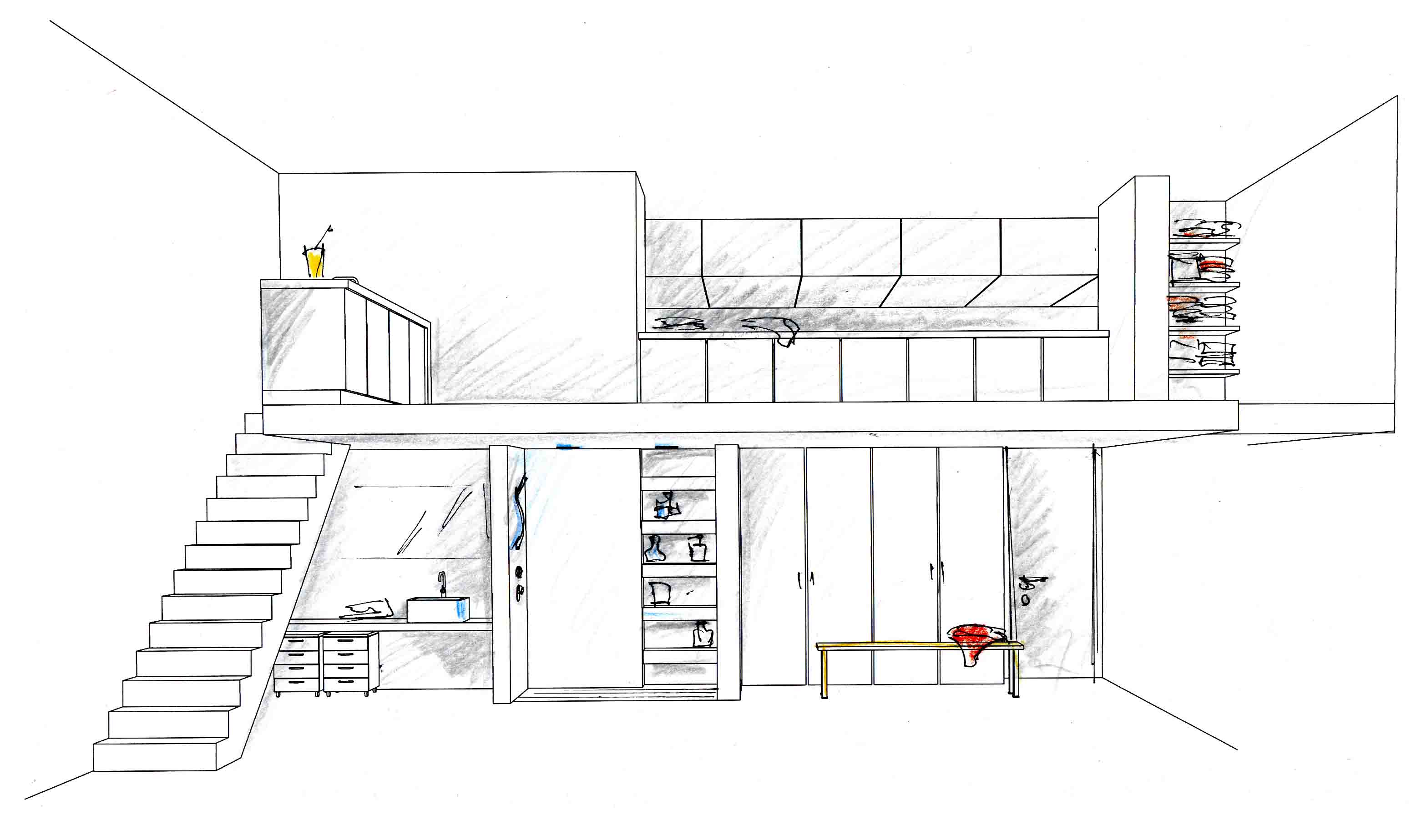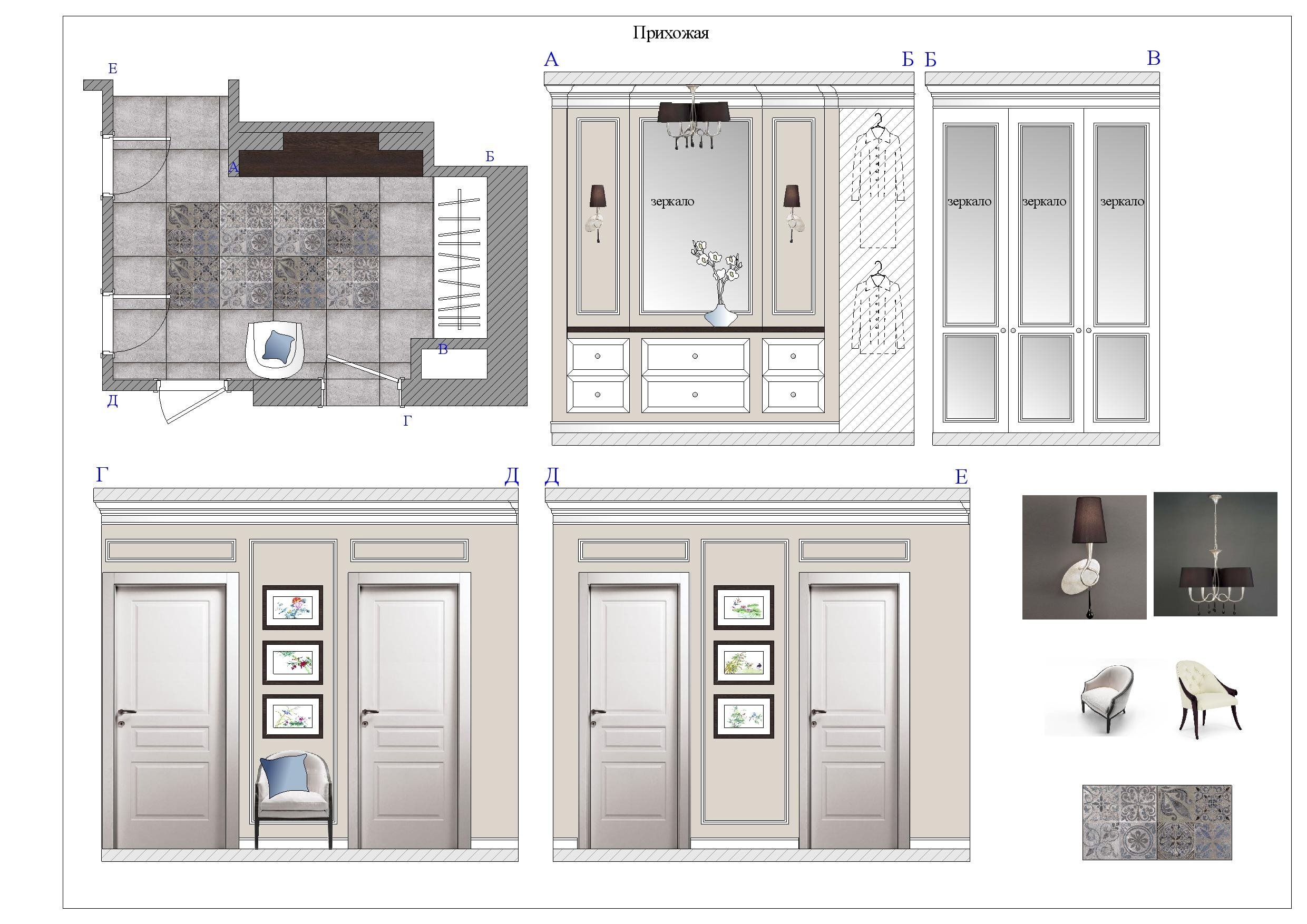 Cualquier diseño no estándar, como muebles empotrados, varios estantes y nichos, puertas rizadas, debe mostrarse en detalle en dibujos separados. Los documentos asegurarán la implementación más precisa y el resultado será exactamente el previsto durante la planificación.