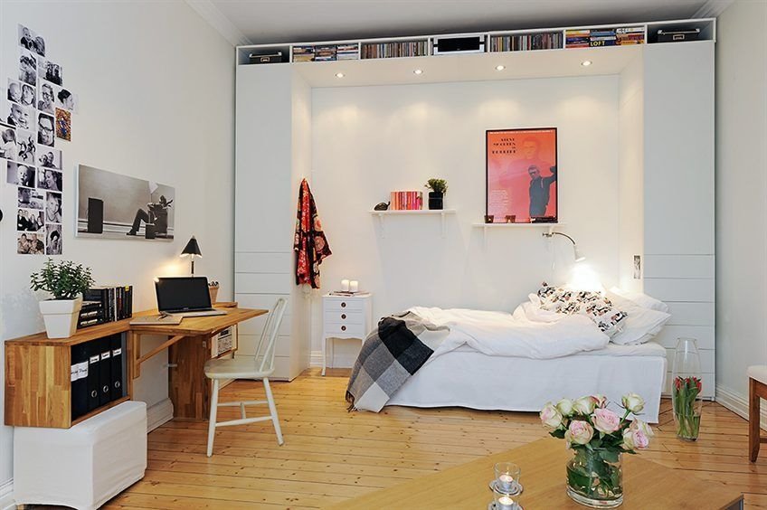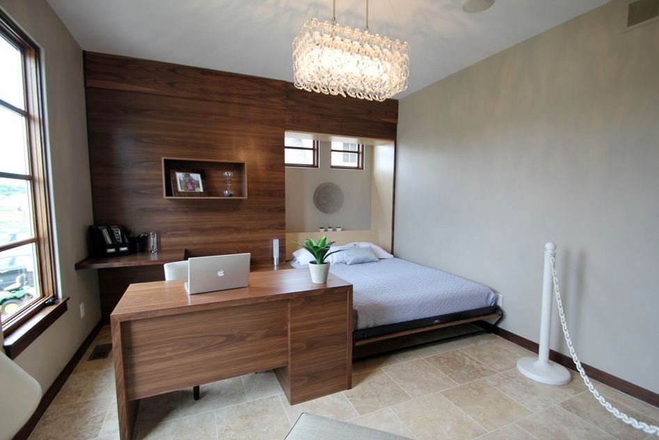 Los propietarios de pequeños apartamentos tienen que refinar el diseño de sus locales y buscar soluciones innovadoras para interiores. Áreas combinadas: una opción elegante y versátil. Los métodos de diseño modernos le permiten crear dos plataformas completamente diferentes dentro de la misma habitación, que no se interfieren entre sí. No sorprenderá a nadie con el dormitorio-sala de estar y la cocina-comedor, pero la combinación del dormitorio y el área de trabajo todavía se ve fresca y original. Esta opción es adecuada para aquellos que necesitan un espacio para la actividad, pero no hay ningún lugar para organizarlo. Durante el día, la habitación suele estar vacía, por lo que nadie interferirá con el trabajo, y la zonificación competente de la habitación permitirá que los adictos al trabajo se queden despiertos hasta tarde. Considere los matices del diseño de tales premisas, sus pros y sus contras.