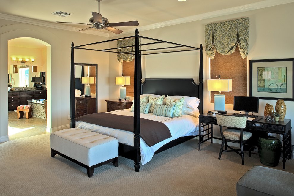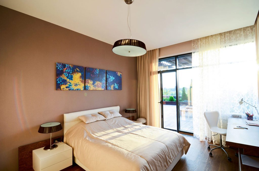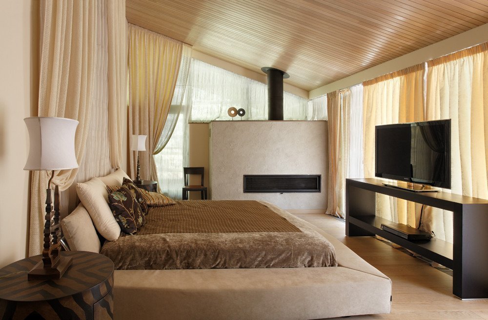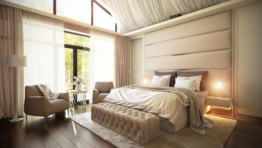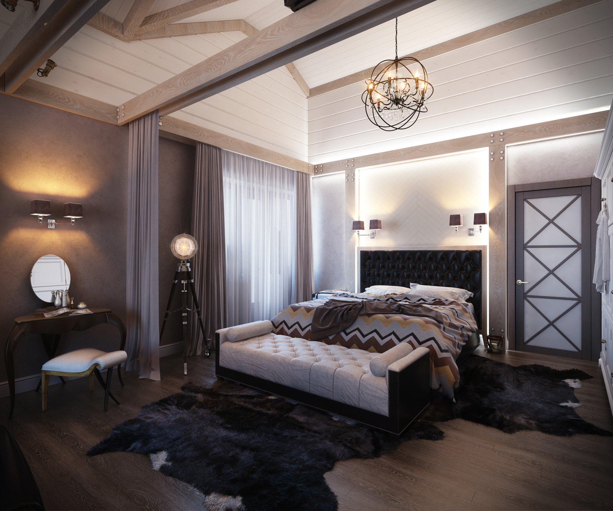 El dormitorio en una casa privada allana el camino para la encarnación de cualquier idea de diseño. Es suficiente para no frenar la imaginación, y obtendrá una habitación exclusiva con el diseño del autor de su propia "preparación". Lo principal es no olvidarse de la ubicación correcta fuera de las instalaciones: generadores de ruido (sala de estar, habitación infantil, cocina). El rincón de descanso debe ser tranquilo y silencioso, propicio para acostarse y leer tranquilamente por la noche.