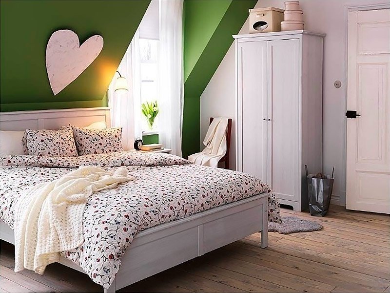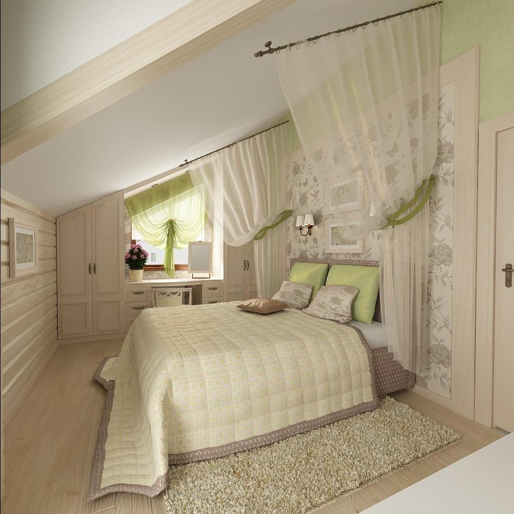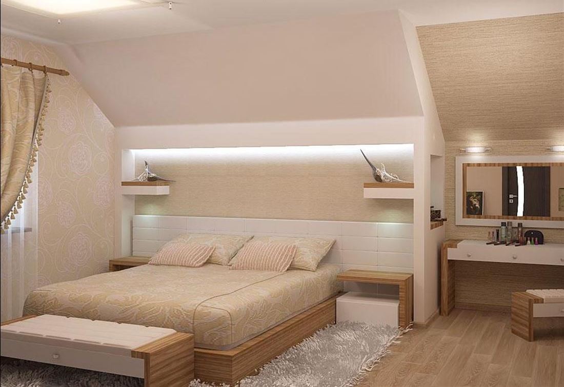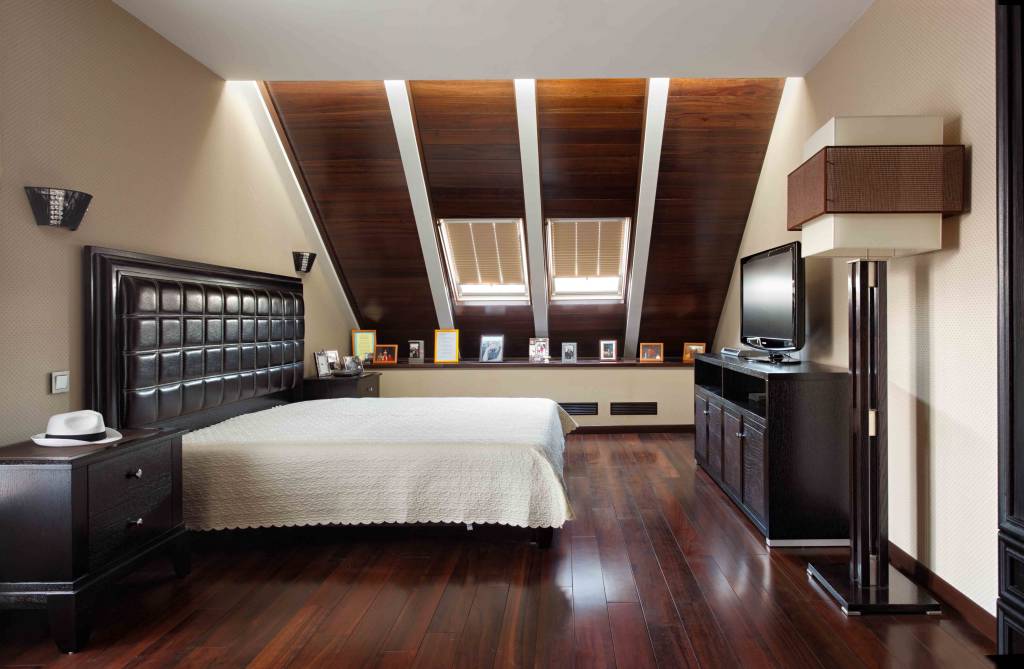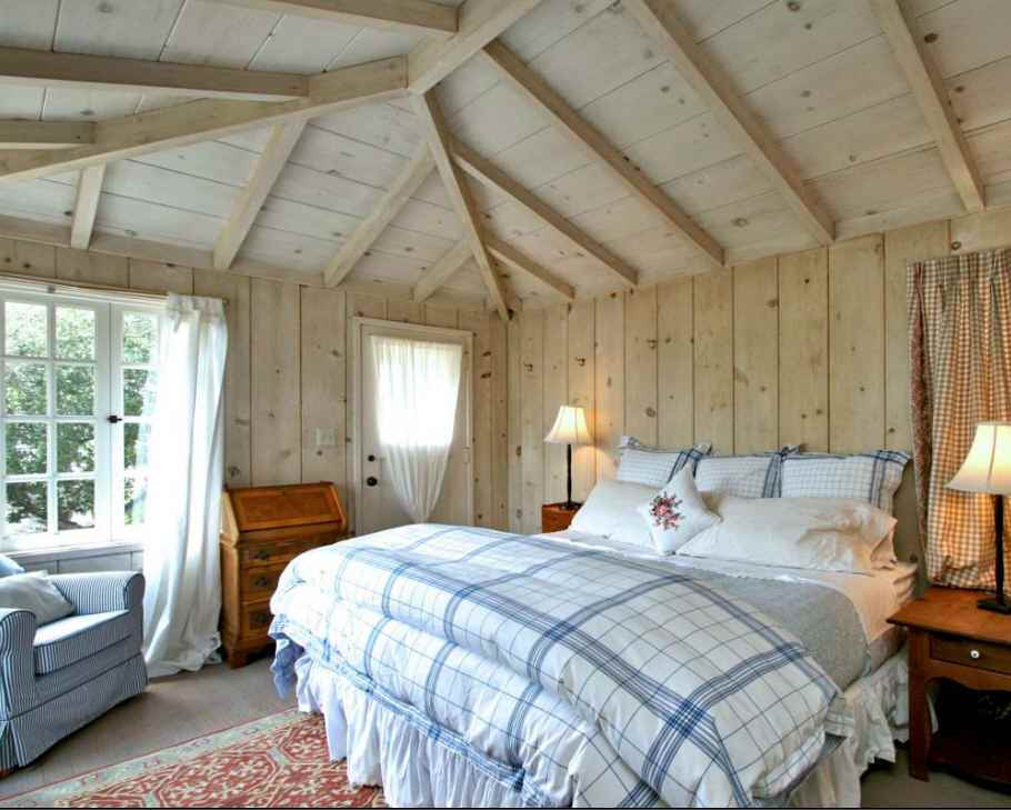 El dormitorio del ático es quizás la mejor opción para una casa privada. Si equipa el techo con ventanas, puede quedarse dormido bajo el cielo nocturno abierto o gotas de lluvia tamborileando en el cristal. Las vigas del techo se convertirán en un elemento decorativo elegante en Provenza, chalet y loft.La arquitectura original de la habitación se destaca por la luz que se suma a la originalidad del dormitorio. Busque opciones de manera efectiva con una combinación de materiales de acabado. Por ejemplo, las paredes verticales están forradas de madera, y las laderas de los techos inclinados están empapeladas con papel tapiz con adornos florales.