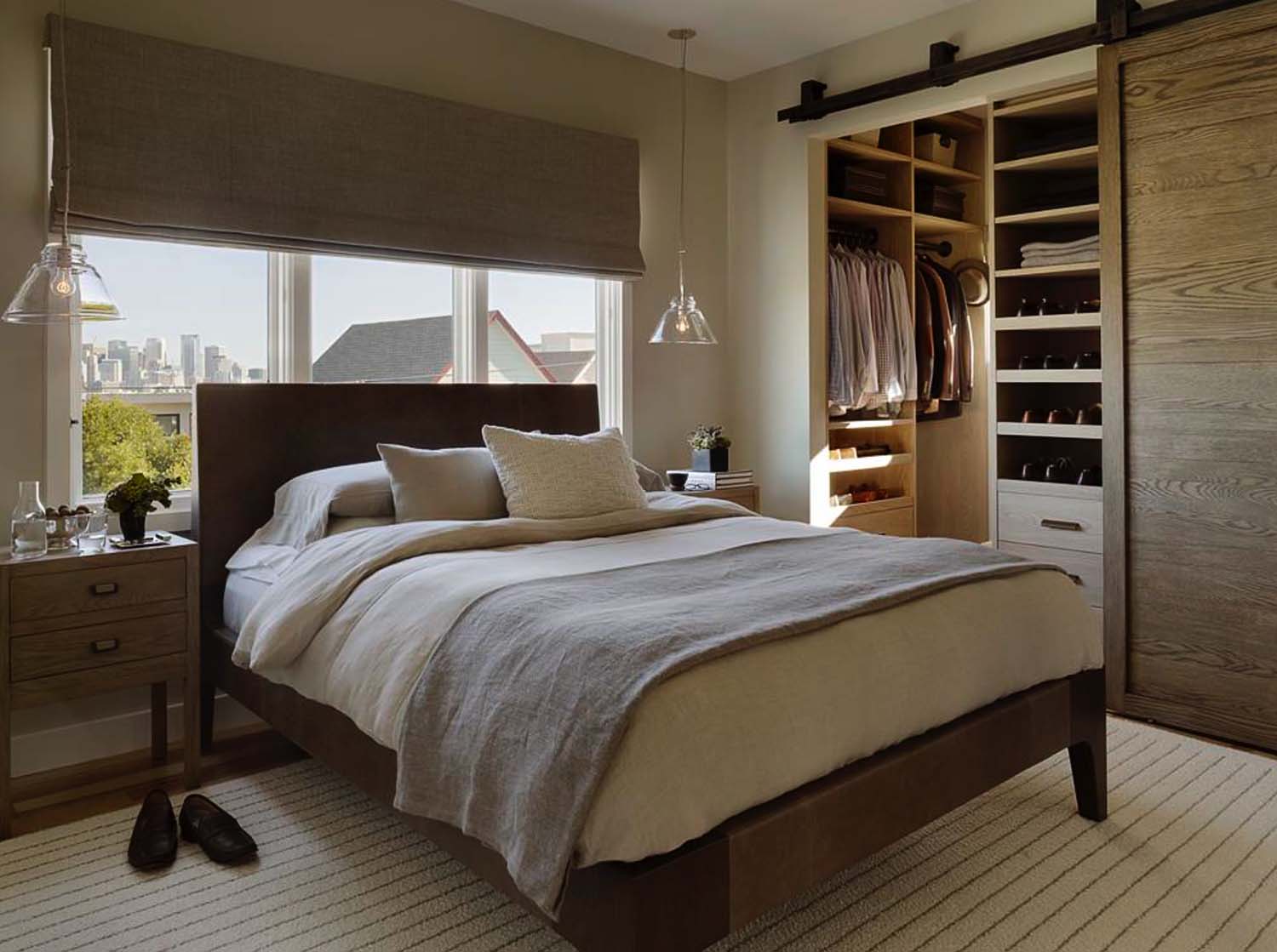 Antes de comenzar a desarrollar el diseño interior de una habitación en una casa privada, debe determinar la ubicación de esta habitación. Este matiz depende principalmente de si la habitación está "tranquila". En las casas de un piso, la habitación más remota se elige para el dormitorio, cuyas ventanas dan al patio. Esto creará un mundo privado para la relajación, que no entrará en contacto con habitaciones ruidosas y abarrotadas: cocina, pasillo y sala de estar. Si la casa tiene dos pisos, la esquina para dormir se coloca en el segundo. Esta práctica es común. Como las instalaciones rara vez se visitan durante el día, la casa no tiene que subir las escaleras constantemente. Sin embargo, las habitaciones del ático se han convertido recientemente en la opción más popular. Tales premisas, por regla general, tienen una forma original, que es superada por las decisiones de diseño. Básicamente estamos hablando de techos inusuales, cuya forma repite los contornos de los techos a dos aguas o inclinados. El "piso" del ático es un ático cálido. Para él, a menudo conducen no solo la luz y la calefacción, sino también el agua. La principal ventaja de este arreglo es la capacidad de adjuntar a la habitación un amplio vestidor, baño o ducha. Dentro de un gran espacio, es fácil realizar cualquier idea y al mismo tiempo hacer que el diseño sea hermoso. En cuanto al tamaño de la habitación, 15-16 metros cuadrados se consideran óptimos. m para dos personas.En condiciones de escasez de metros cuadrados, se equipan pequeñas salas de recreación de 10-12 metros cuadrados. m. Para dos personas ya será pequeña, pero espaciosa si solo hay un inquilino. Las habitaciones son de 20 metros cuadrados. my más se consideran voluminosos. A menudo se combinan con otras salas: salas de estar, salas de estudio, talleres o bibliotecas.