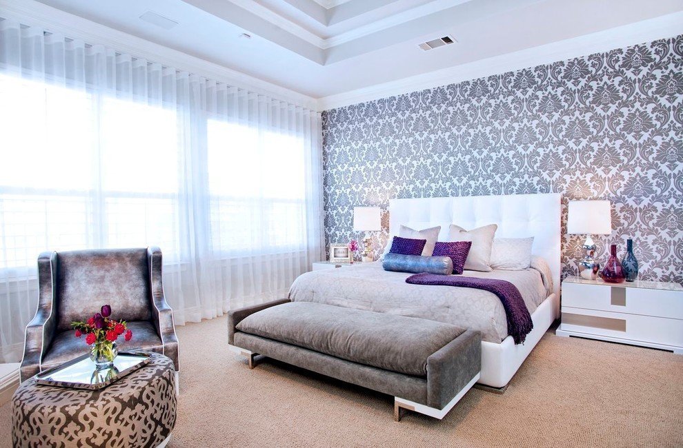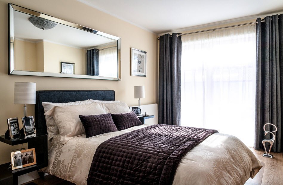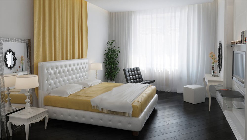 Los textiles se consideran un componente importante de la decoración de interiores. Dependiendo de la textura de la tela y su color, la habitación puede hacerse acogedora o, por el contrario, fría y desagradable. El dormitorio recibe abundante luz natural, por lo que es mejor usar cortinas de telas claras. La única excepción es el estilo clásico, donde las cortinas pesadas con patrones se consideran un elemento integral de dirección.En las versiones modernas, usan cortinas de panel que se ven elegantes y ordenadas. Las ventanas no cortan en el desván, prefieren persianas prácticas. Para estilos románticos (especialmente italianos) use cortinas romanas. Las fundas, almohadas, alfombras en el piso y tapicería se seleccionan de acuerdo con el concepto de diseño básico. En el minimalismo, por ejemplo, prevalecen la seda y el algodón. Los estilos clásicos Elite no pueden prescindir de terciopelo suave, terciopelo y batista. El lino con su textura fibrosa áspera es ideal para estilos rústicos e interiores ecológicos.