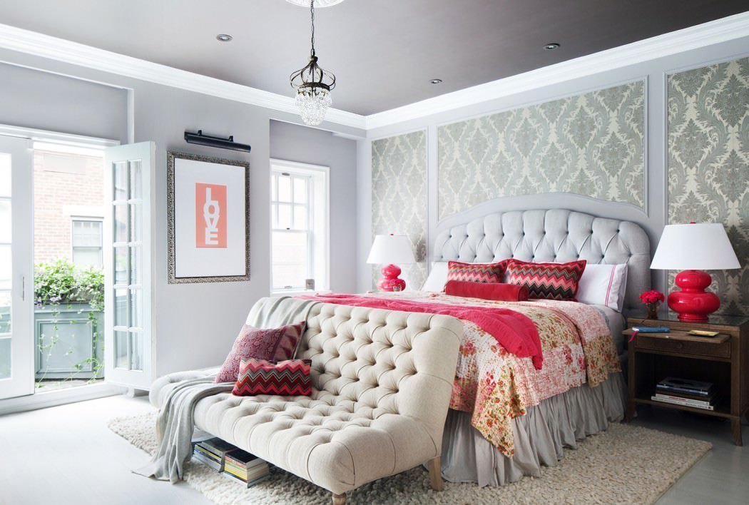 Piedra artificial y natural o ladrillo. Estos materiales no terminan toda la habitación, prefieren pequeñas áreas de acento. En las habitaciones, su papel lo juegan las paredes en la cabecera de la cama.
