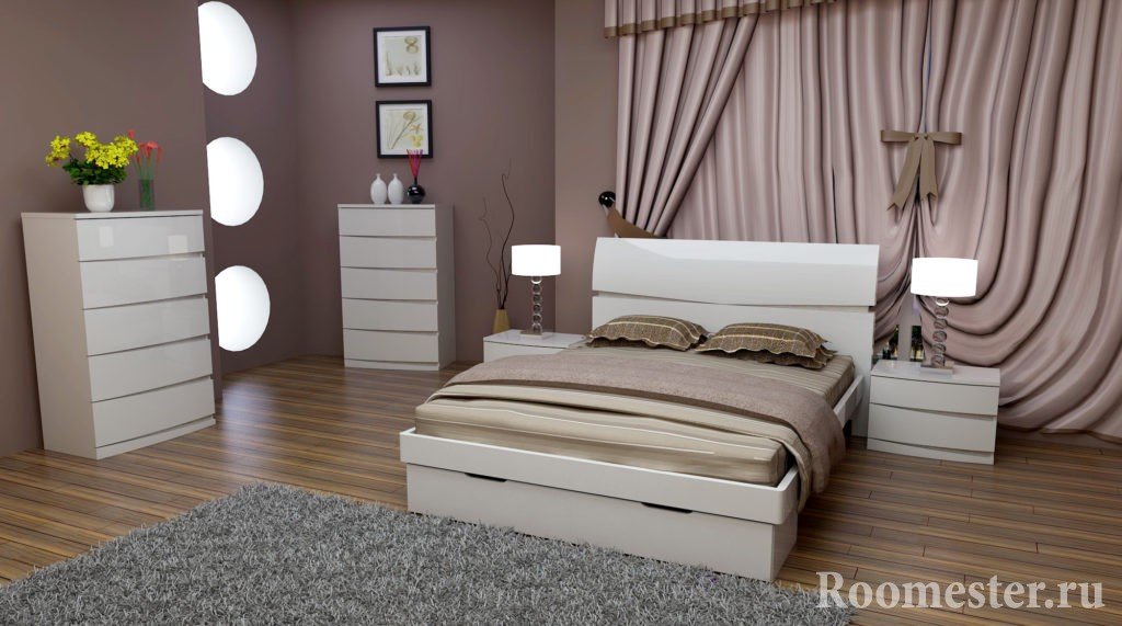 Al decorar el dormitorio, se utilizan productos de metal, madera y tejidos naturales. Siguiendo estas recomendaciones, puede crear fácilmente un interior de dormitorio moderno.