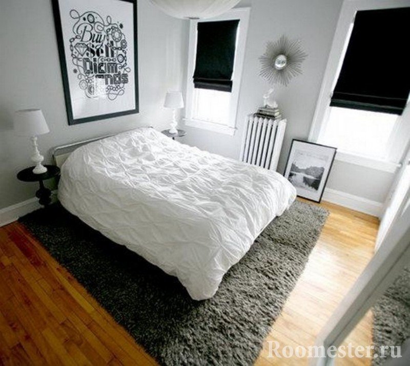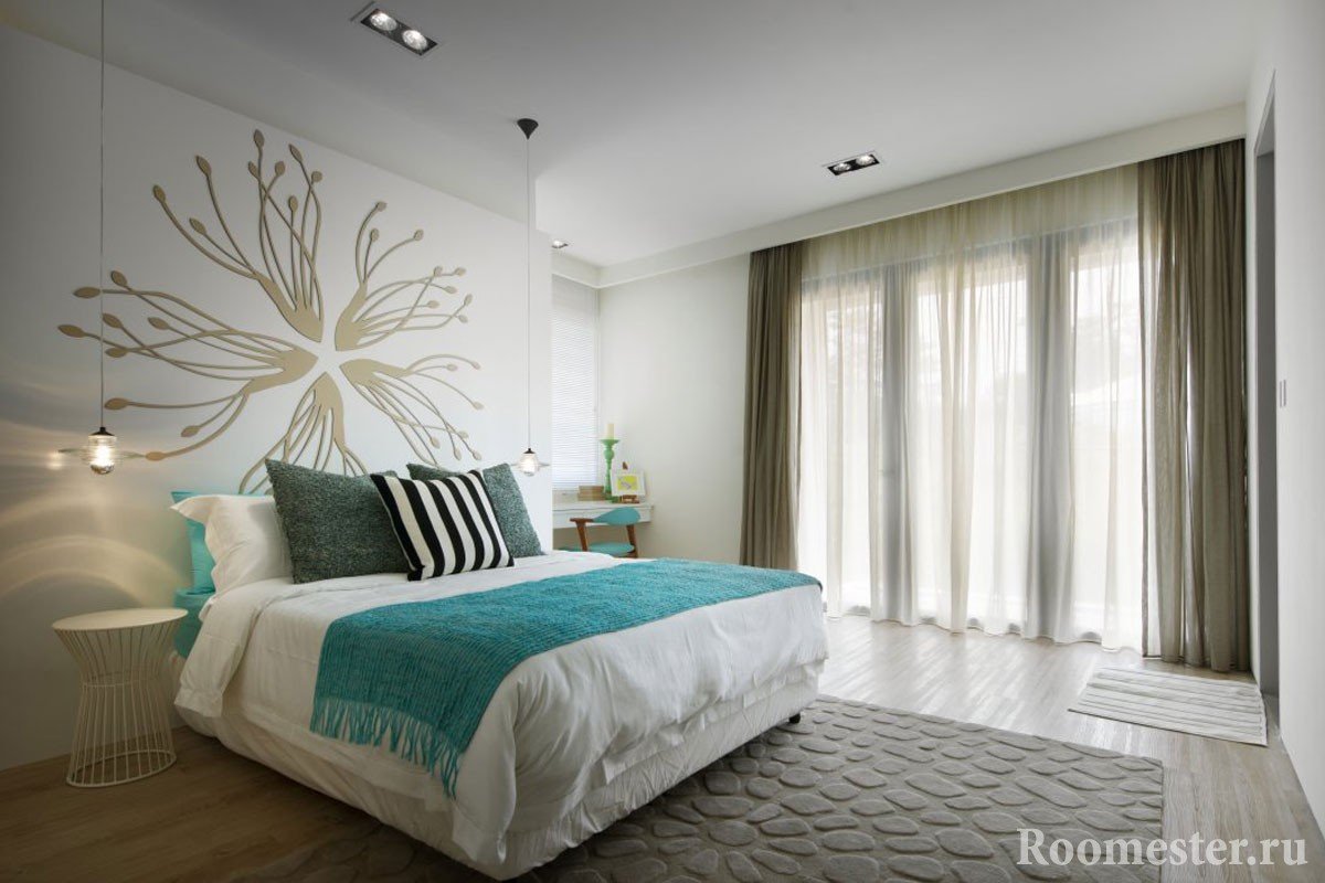 Dado que la habitación se hará en un color, es necesario elegir un acento brillante que haga que la habitación sea única. Puede ser una decoración de pared, hecha en un color diferente de los colores principales, una imagen o foto brillante, un plaid inusual en la cama.