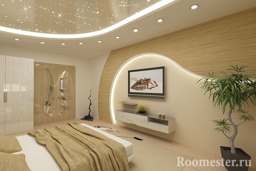 El diseño de la habitación comienza con la elección de materiales para el diseño del techo. El estilo moderno le permite usar los siguientes tipos de diseños: