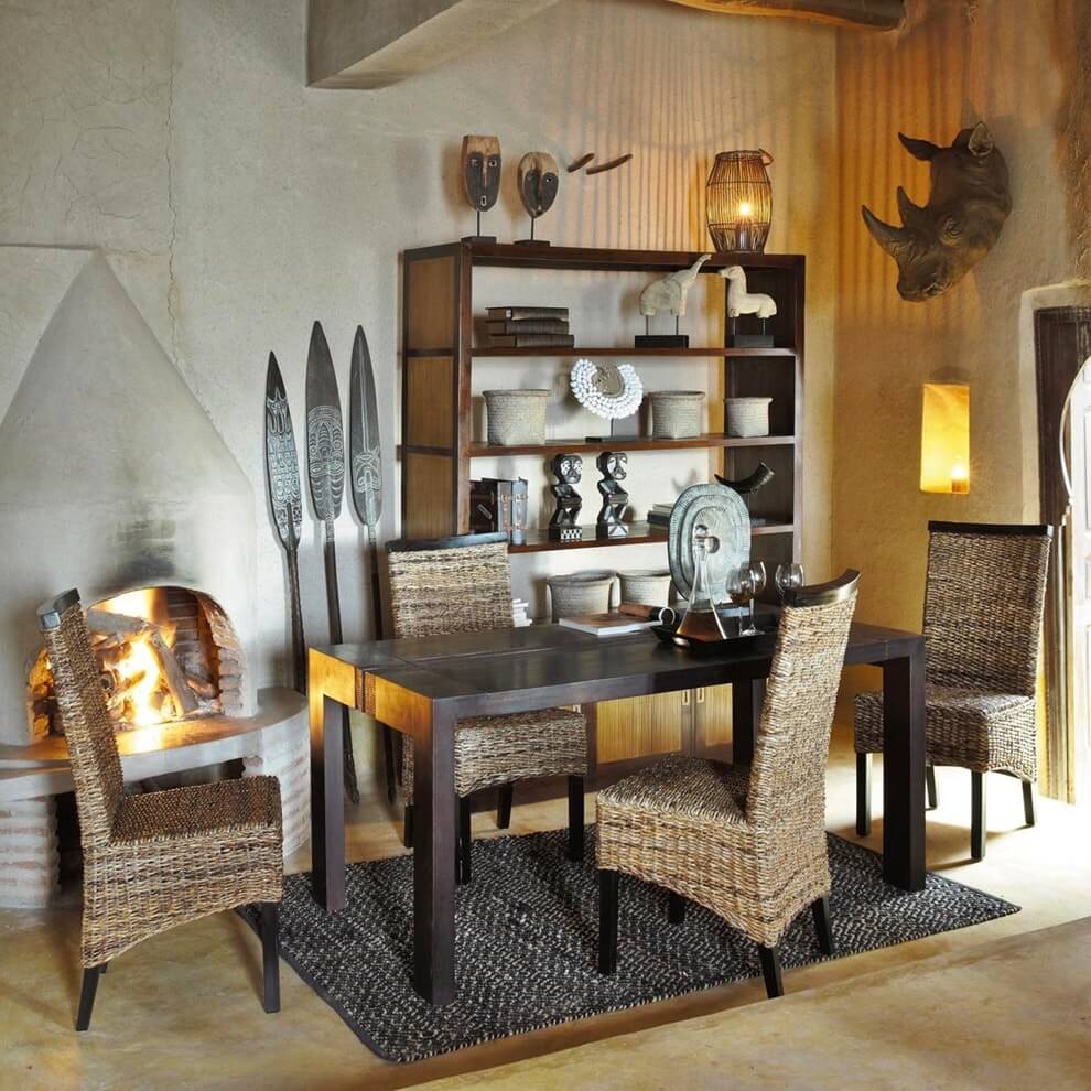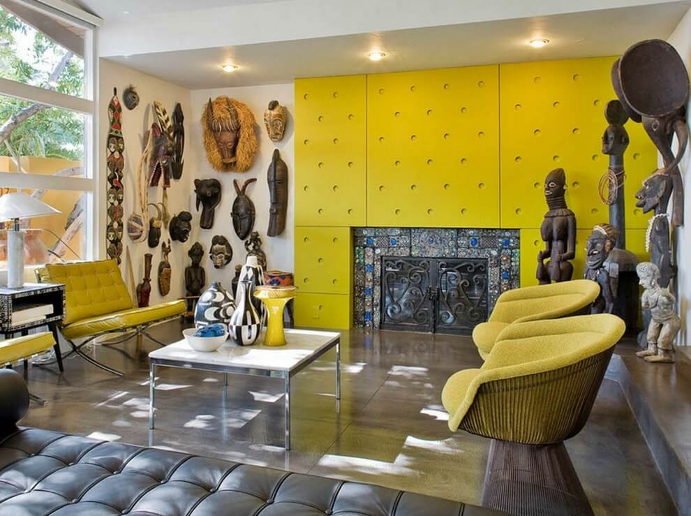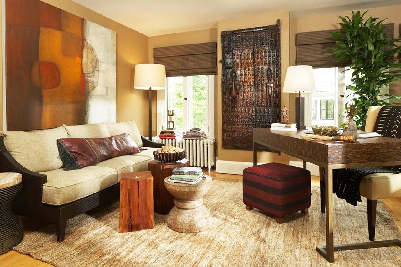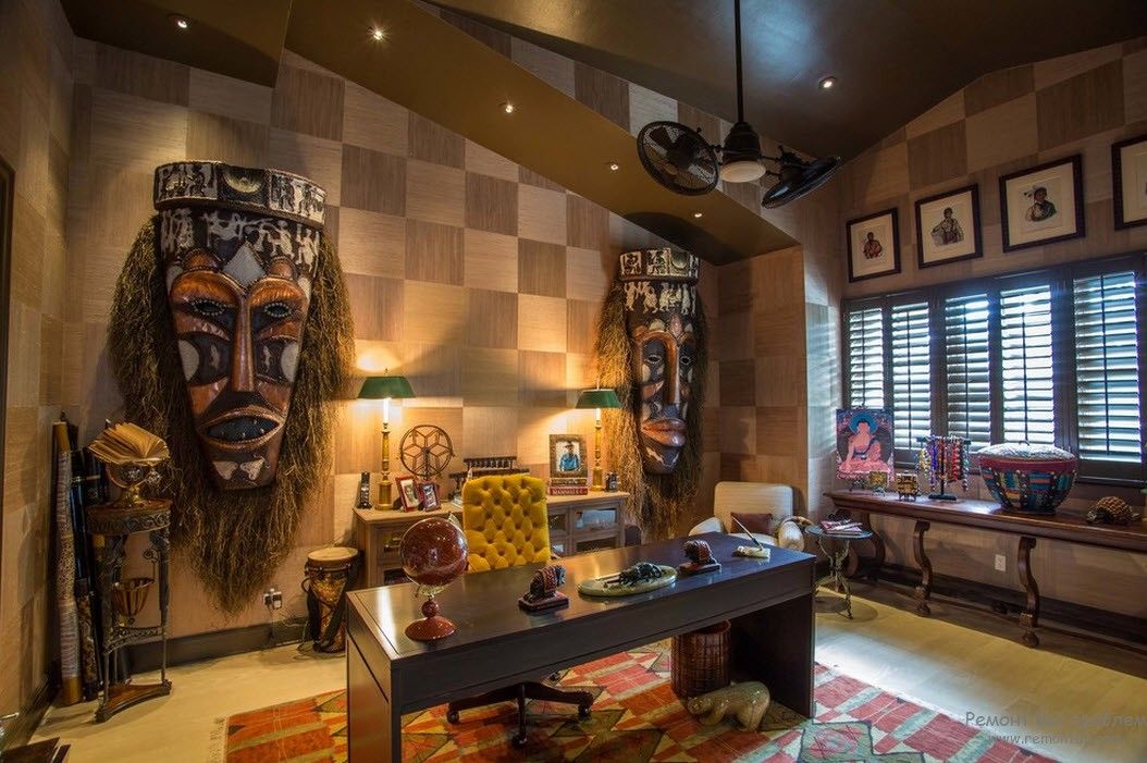 Lo étnico se considera la máxima imitación de los auténticos "interiores" de los hogares africanos. Dado que, desafortunadamente, la mayoría de los africanos viven muy por debajo de la línea de pobreza, es poco probable que las personas que están acostumbradas a los beneficios de la civilización conviertan sus cómodos apartamentos en chozas de barro. La tendencia colonial es la quintaesencia de la cultura africana y europea.Los fundadores culturales del modernismo, el cubismo y el abstraccionismo contribuyeron en gran parte a la popularización del estilo. Entre los artistas, África fue elogiada como un continente que logró mantener una fuerte conexión con la naturaleza. En este estilo, fue fácil encontrar la simplicidad a la que los pintores de la nueva era gravitaban, y el color inimitable, admirando su ingenuidad ligera. Incluso hasta ahora, la cultura africana se considera exótica. En interiores, su influencia no es tan común. Los diseñadores consideran el estilo africano como una opción "para un amante valiente", que es elegido solo por aquellos que están apasionados por el "continente negro".