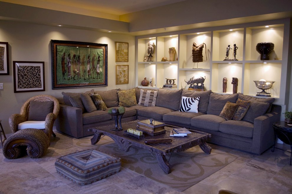 El marroquí se caracteriza por rasgos llamativos de la cultura árabe. La tendencia egipcia a este respecto es más individual, ya que los interiores son únicos. El estilo africano en el sentido amplio de la palabra se caracteriza por características comunes: