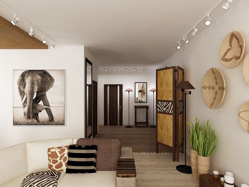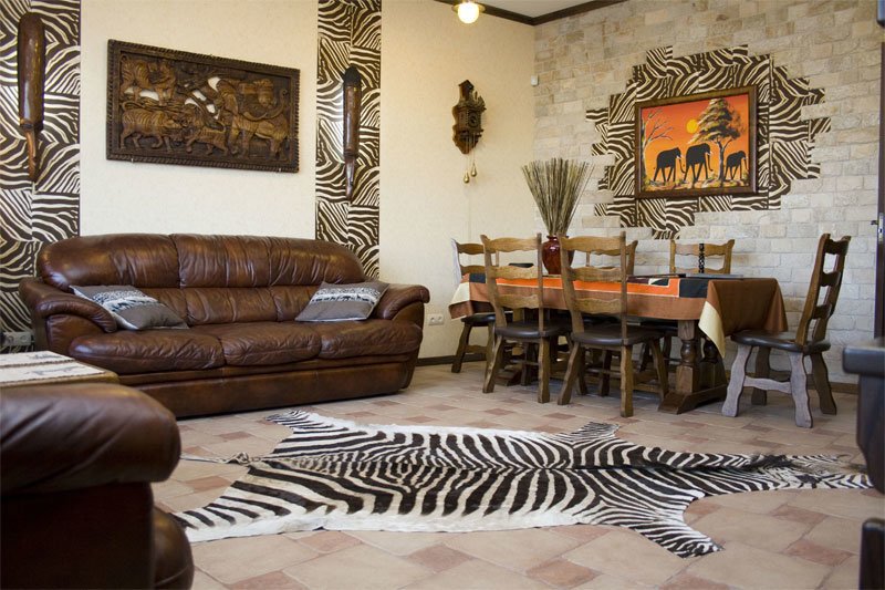 El estilo africano también es fácil de implementar en el baño, el pasillo o la guardería. El interior étnico definitivamente se convertirá en una maravilla, ya que tal decoración incluso en cafeterías y bares es extremadamente rara, y mucho menos en apartamentos. Quizás el único inconveniente del estilo puede considerarse una combinación compleja con espacios reducidos. Su combinación de colores y la textura especial de las superficies utilizadas son tan específicas que simplemente desordenarán una habitación pequeña.