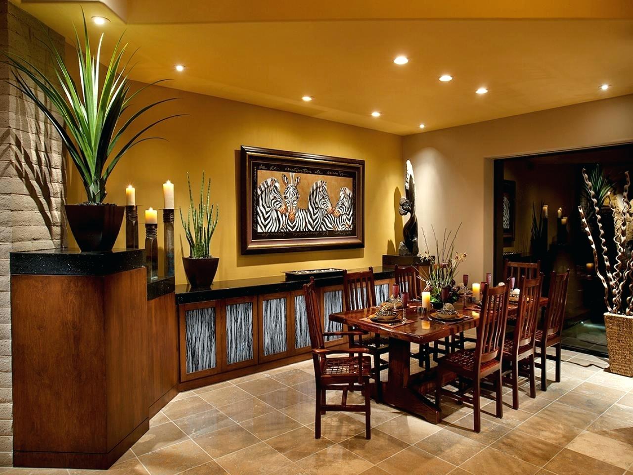 Al diseñar un interior en estilo africano con el piso, pueden surgir problemas, ya que en las cabañas generalmente es de tierra. Nadie importará tierra al apartamento, por lo que utilizan opciones modernas y simples: baldosas de cerámica, tableros de parquet. El azulejo, por cierto, se usa en interiores marroquíes, ya que refresca agradablemente la habitación y ayuda a escapar del calor. El revestimiento se elige tradicionalmente en tonos oscuros: marrón, rojo, chocolate, marrón oscuro.