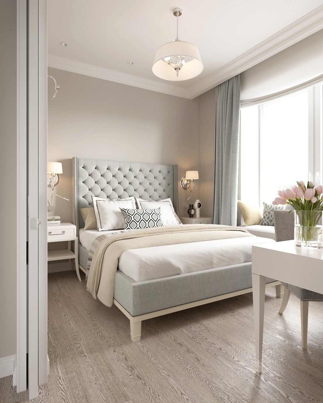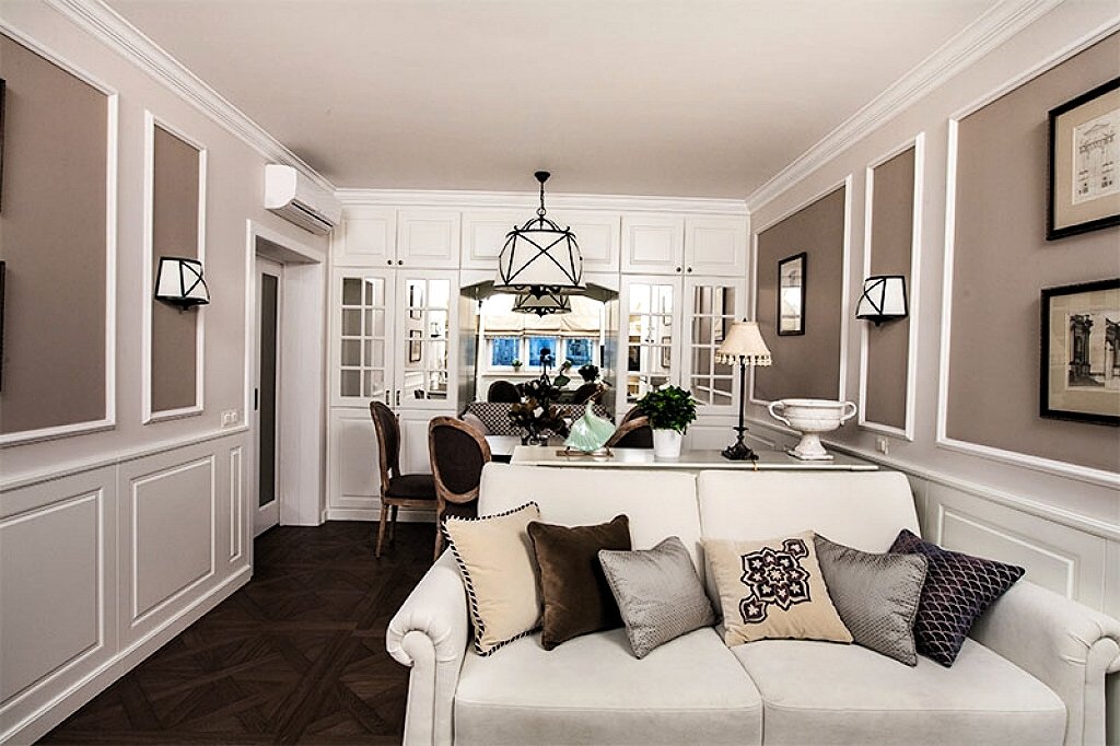 beige: popular en alianzas con blanco o como color primario. Menos marcas en comparación con el tono anterior y no requiere la aplicación de esfuerzos titánicos para mantener una apariencia decente de la habitación;