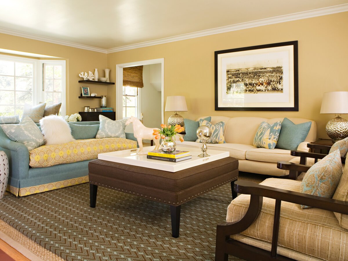 arena: un tono amarillo opaco, que a menudo sirve como acentos expresivos. Un fragmento de la pared, una alfombra, muebles tapizados pueden pintarse de este color;