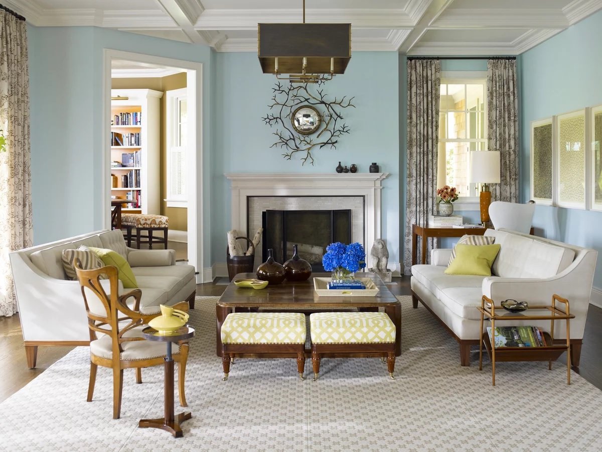El interior americano no debe estar sobresaturado con colores brillantes. El acabado del piso, las paredes, el techo, la coloración de los muebles grandes deben ser moderados, monofónicos. Los colores brillantes se usan como acentos.