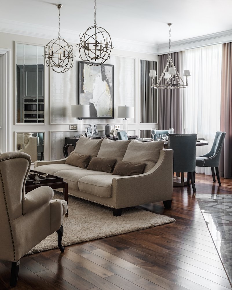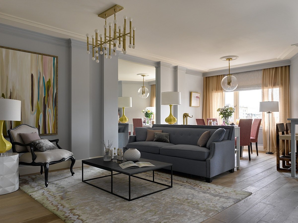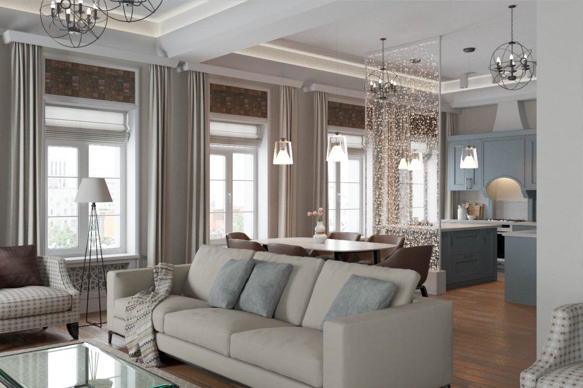 Las habitaciones espaciosas requieren una cuidadosa reflexión sobre los escenarios de iluminación para cada zona.