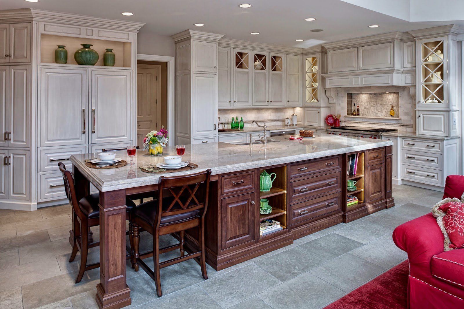 Muy a menudo, se seleccionan muebles cómodos de gran tamaño, y también funcionales para la cocina.