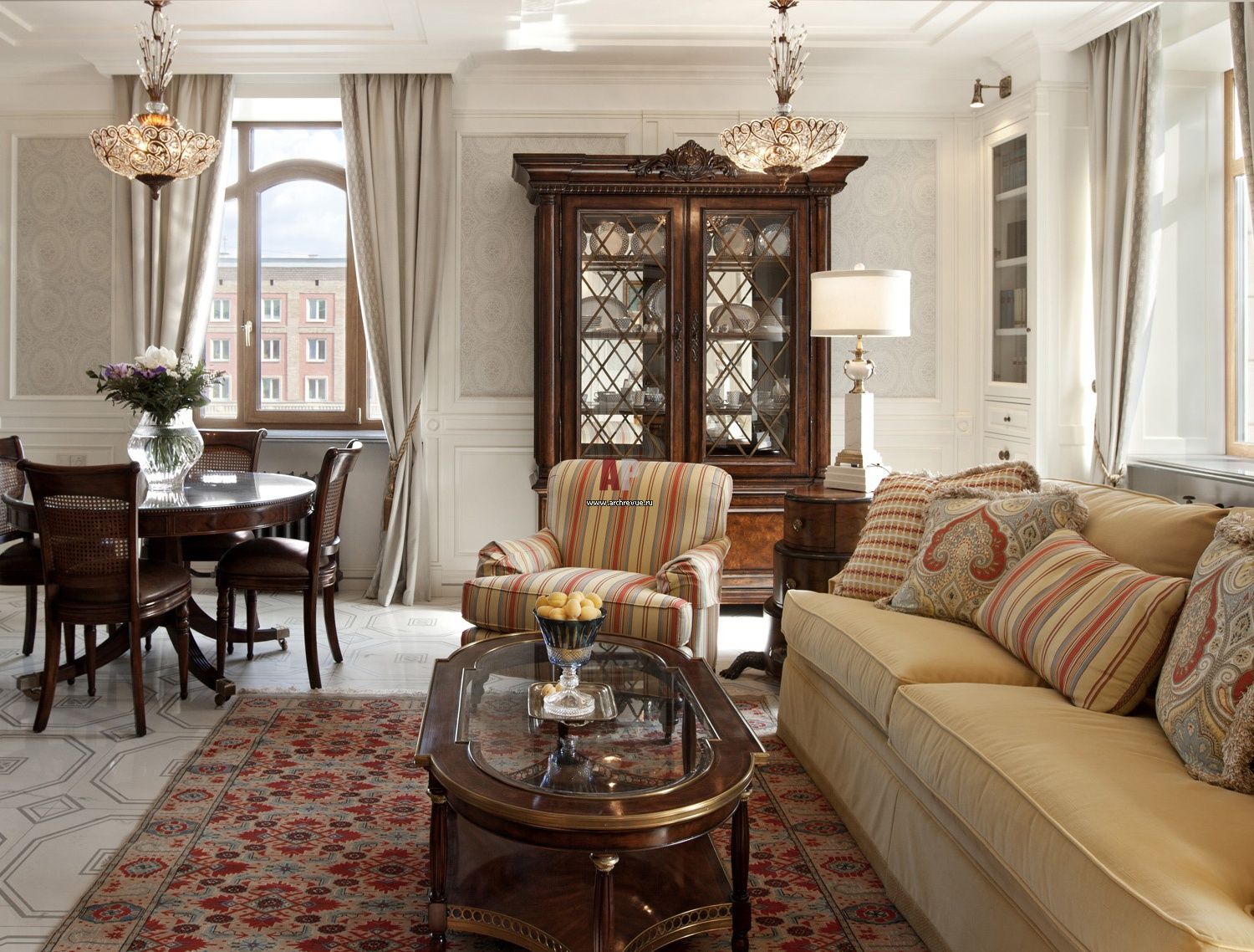 El predominio de la iluminación localizada más económica: la presencia de apliques, lámparas de pie, lámparas de mesa. La luz central se usa en salas de estar;