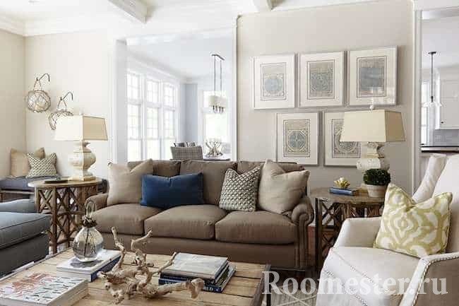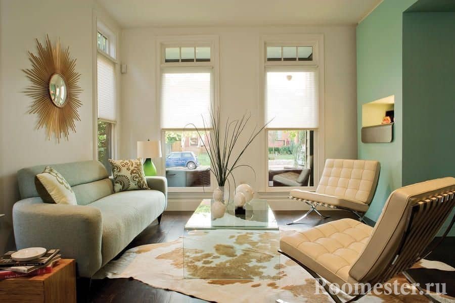 Además, un punto importante es la iluminación bien elegida. El propietario siempre tiene la opción de usar iluminación natural, lo cual es extremadamente raro, o confiar en una iluminación artificial confiable, que también facilita la regulación. La intensidad correcta de la luz puede multiplicar las ventajas de la combinación de colores de la sala de estar y presentarla de la mejor manera. Por ejemplo, una atenuación trivial puede crear la ilusión de un regreso al pasado y ocultar la imitación de algunos elementos. El ambiente de la sala se beneficiará de esto.