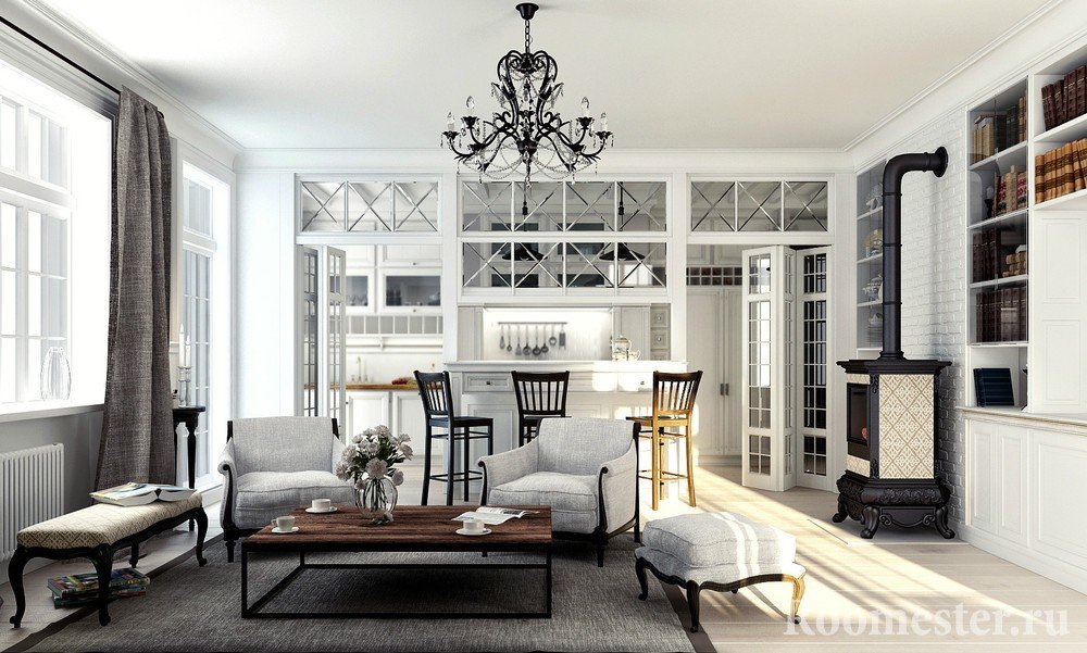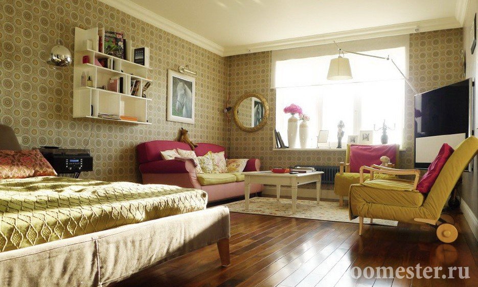Los propietarios de un apartamento tipo estudio o una sala de estar de una habitación tienen una gran oportunidad para traducir las fantasías interiores en realidad. El principio principal de implementación es la mayor cantidad de luz y sol posible, por lo que una ventana grande siempre será apropiada en la habitación. Lo cuelgan con cortinas claras o blancas como la nieve, así como cortinas claras de telas gruesas con encajes o inserciones de tela transparente.