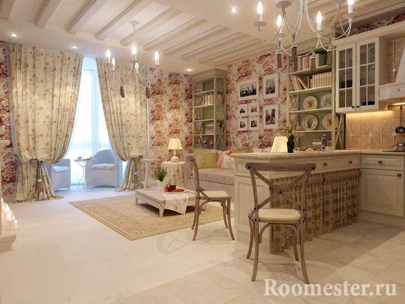 Diseño de apartamentos de una habitación. En el estilo provenzal, cualquier detalle que se seleccione de acuerdo con las preferencias de sabor es importante. Lograr esto no es del todo difícil si eres un romántico incorregible. Experimente con bordados, tallados, patrones, arregle hermosos aparadores, gabinetes. Lo principal es que no hay sobresaturación del espacio cargado con una gran cantidad de partes.