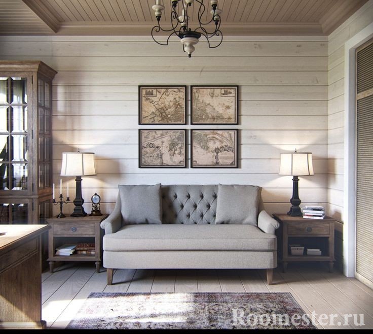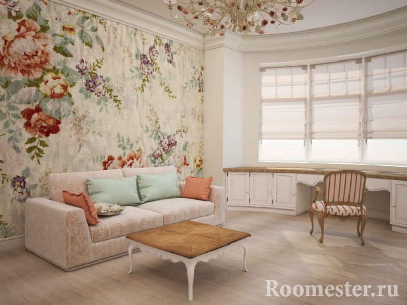 En la foto de los proyectos implementados, se traza una conexión evasiva con la naturaleza y el cálido verano, que se expresa mediante adornos florales en papel tapiz, cuadros y cortinas delicadas. También se utiliza una tira o jaula en la decoración, otra característica distintiva. El esquema de color general es discreto, cercano a tonos delicados pastel. A menudo, el entorno incluye patas retorcidas de bronce para sillas, sofás, platos de porcelana en las paredes, ollas de barro en el alféizar de la ventana. Una técnica común de especialistas es dar a los muebles el efecto de una superficie envejecida. Esta técnica se logra experimentando con texturas y colores. En los asentamientos franceses, los muebles de calidad se transmitían de generación en generación sin perder practicidad.