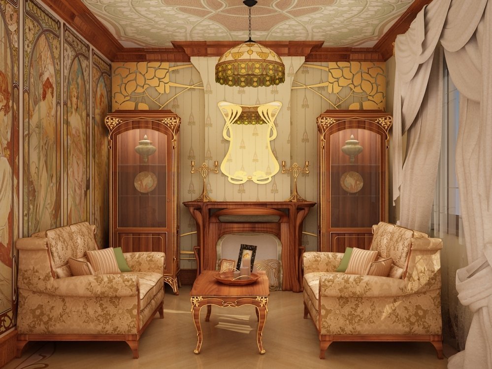 La brillante apariencia del interior Art Nouveau es fácil de reconocer por los siguientes signos: