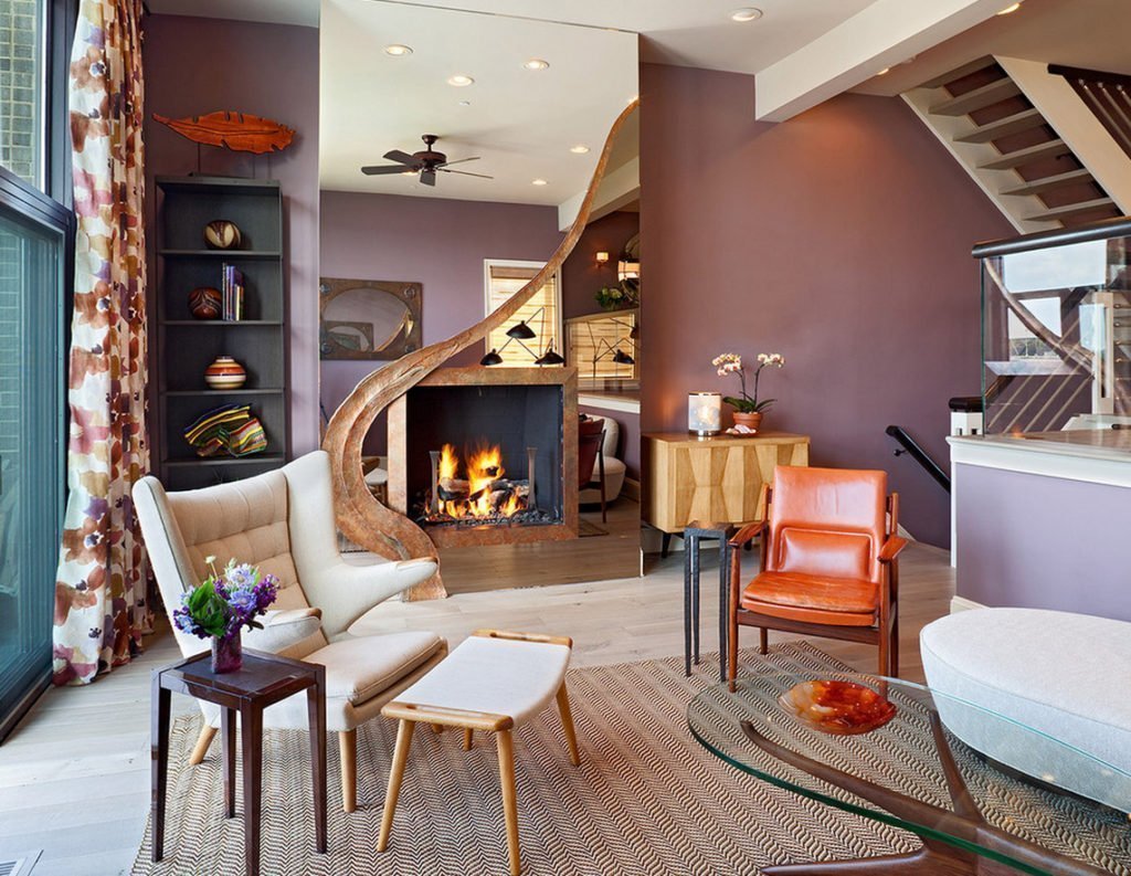 Una característica distintiva de los elementos naturales del estilo es su color natural en el interior. Por lo tanto, uno no debería sorprenderse por la abundancia de tonos pastel y apagados. Estos incluyen: todos los tonos de marrón (desde la leche hasta el color del café), los colores de la paleta acromática (desde la plata hasta el color del asfalto húmedo), verde. La tarea de este último es revivir la decoración con su presencia. A veces se usa un fuerte contraste: el mismo rojo que el color opuesto en la paleta.