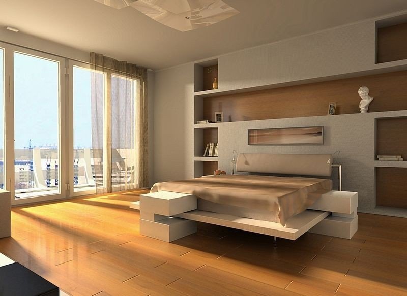 Para crear un espacio en este estilo, es recomendable ser el dueño de un estudio. Dado que la modernidad requiere una cuadratura sólida. El diseño implica el uso de varios métodos de zonificación: el uso de pisos estampados, particiones de muebles, diversos accesorios. Todos ellos deben estar sin esquinas, con líneas suaves e incluso caladas. La separación de las partes de la habitación es extremadamente suave, libre.