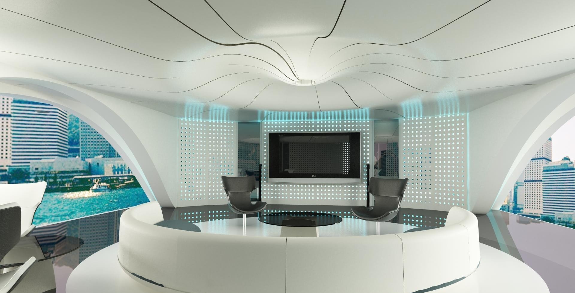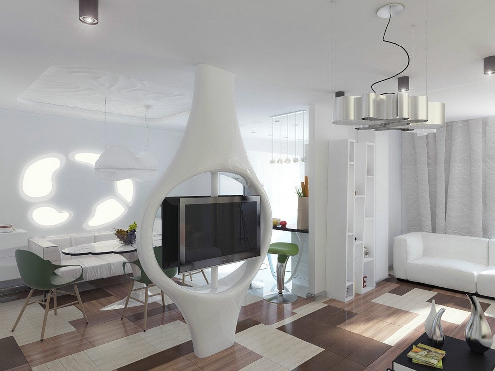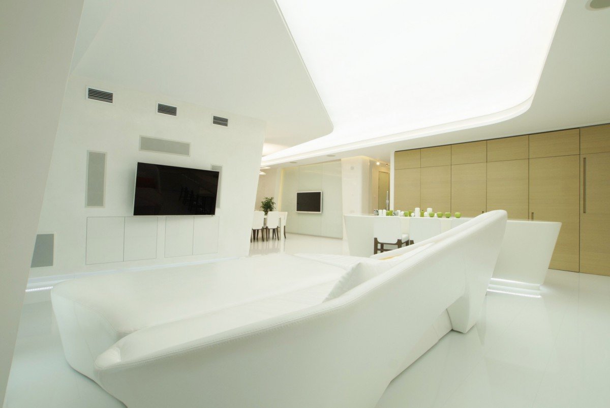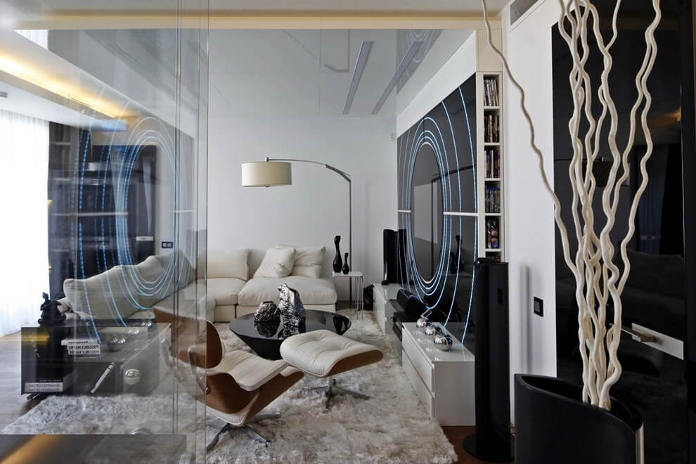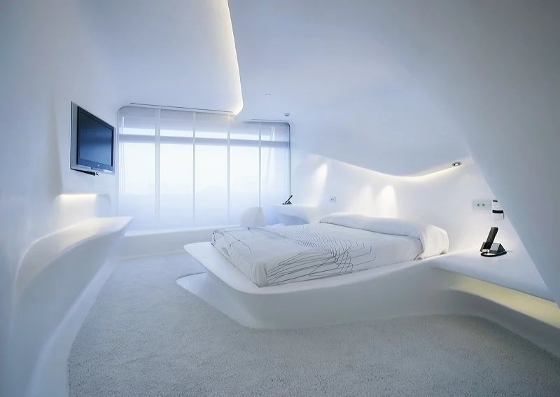 Los interiores futuristas a menudo usan la última tecnología. Aunque se fusionan armoniosamente en el interior, se convierten en uno de sus elementos. En este matiz, se traza la principal diferencia entre el estilo y la alta tecnología de mente cerrada, donde la técnica sirve como la base alrededor de la cual se tuerce la "trama". El futurismo se ve orgánicamente incluso sin él, compensa la falta de contrastes, formas y originalidad de los materiales. Muchos ideólogos de la tendencia realmente se convirtieron en visionarios y predijeron la aparición de ciertos medios técnicos, cuya existencia imaginar en su época era simplemente impensable.