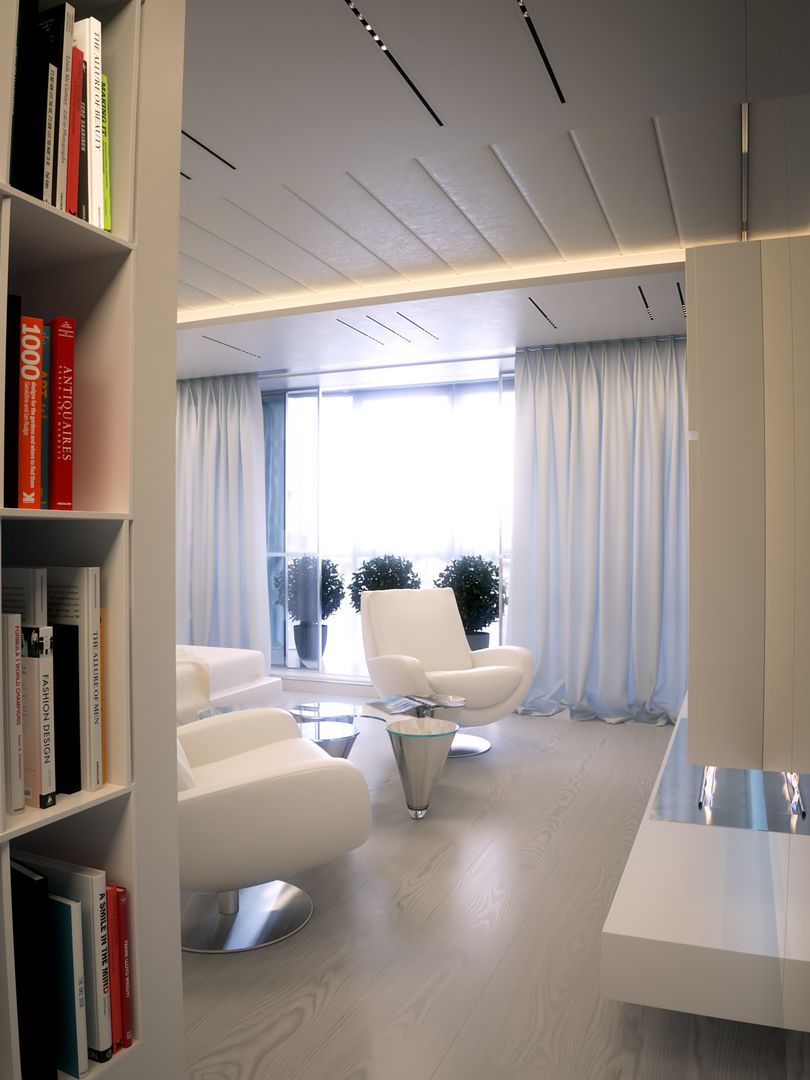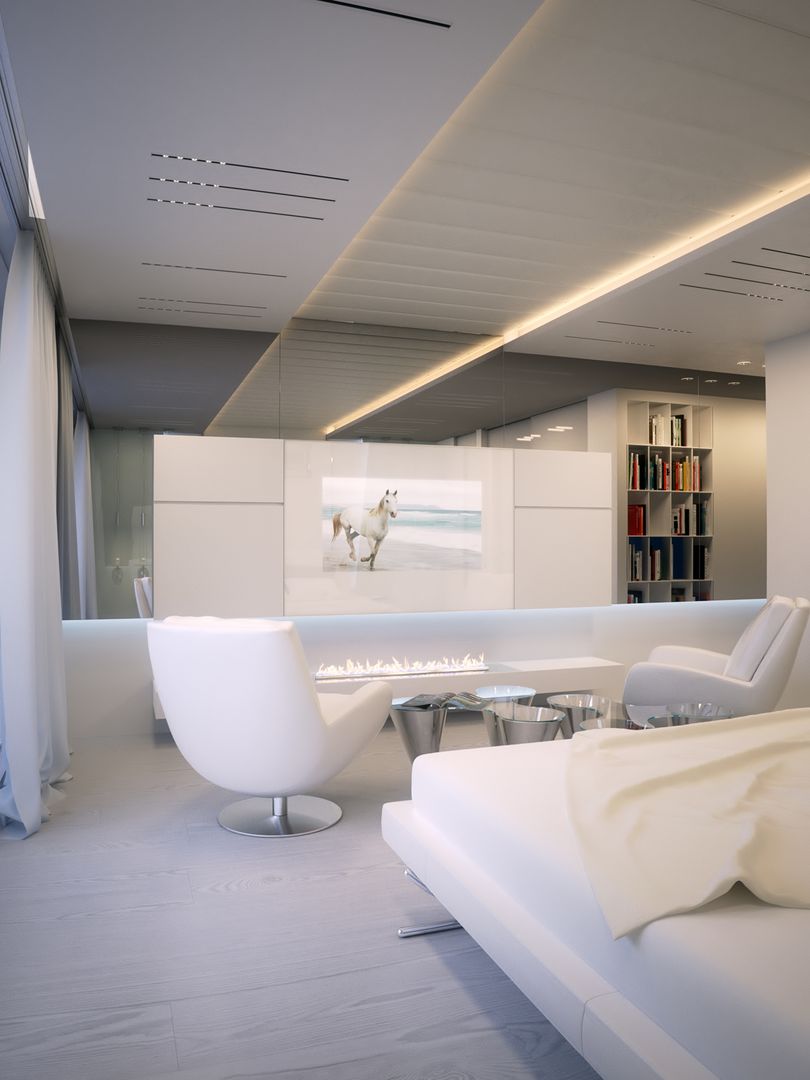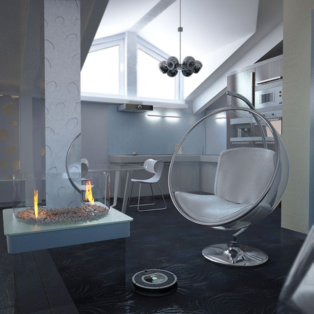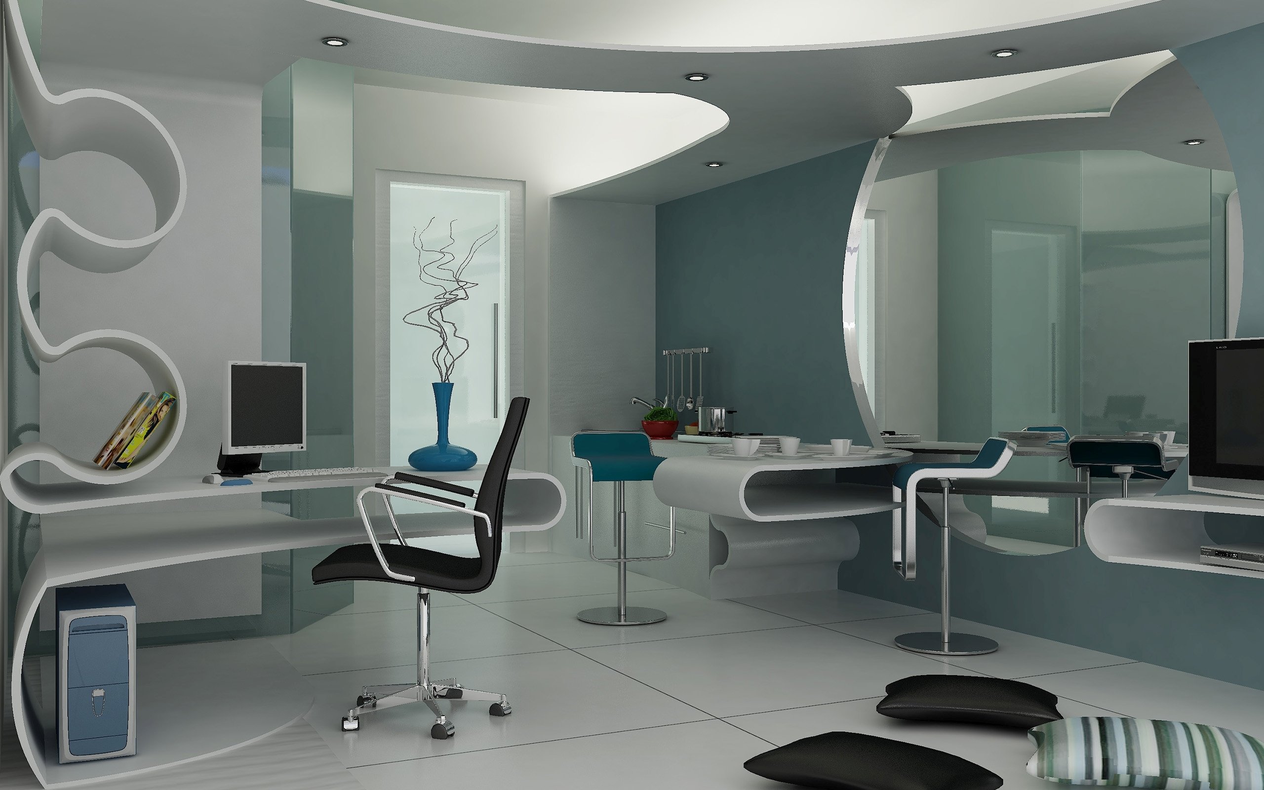 Los interiores futuristas a menudo usan la última tecnología. Aunque se fusionan armoniosamente en el interior, se convierten en uno de sus elementos. En este matiz, se traza la principal diferencia entre el estilo y la alta tecnología de mente cerrada, donde la técnica sirve como la base alrededor de la cual se tuerce la "trama". El futurismo se ve orgánicamente incluso sin él, compensa la falta de contrastes, formas y originalidad de los materiales. Muchos ideólogos de la tendencia realmente se convirtieron en visionarios y predijeron la aparición de ciertos medios técnicos, cuya existencia imaginar en su época era simplemente impensable.