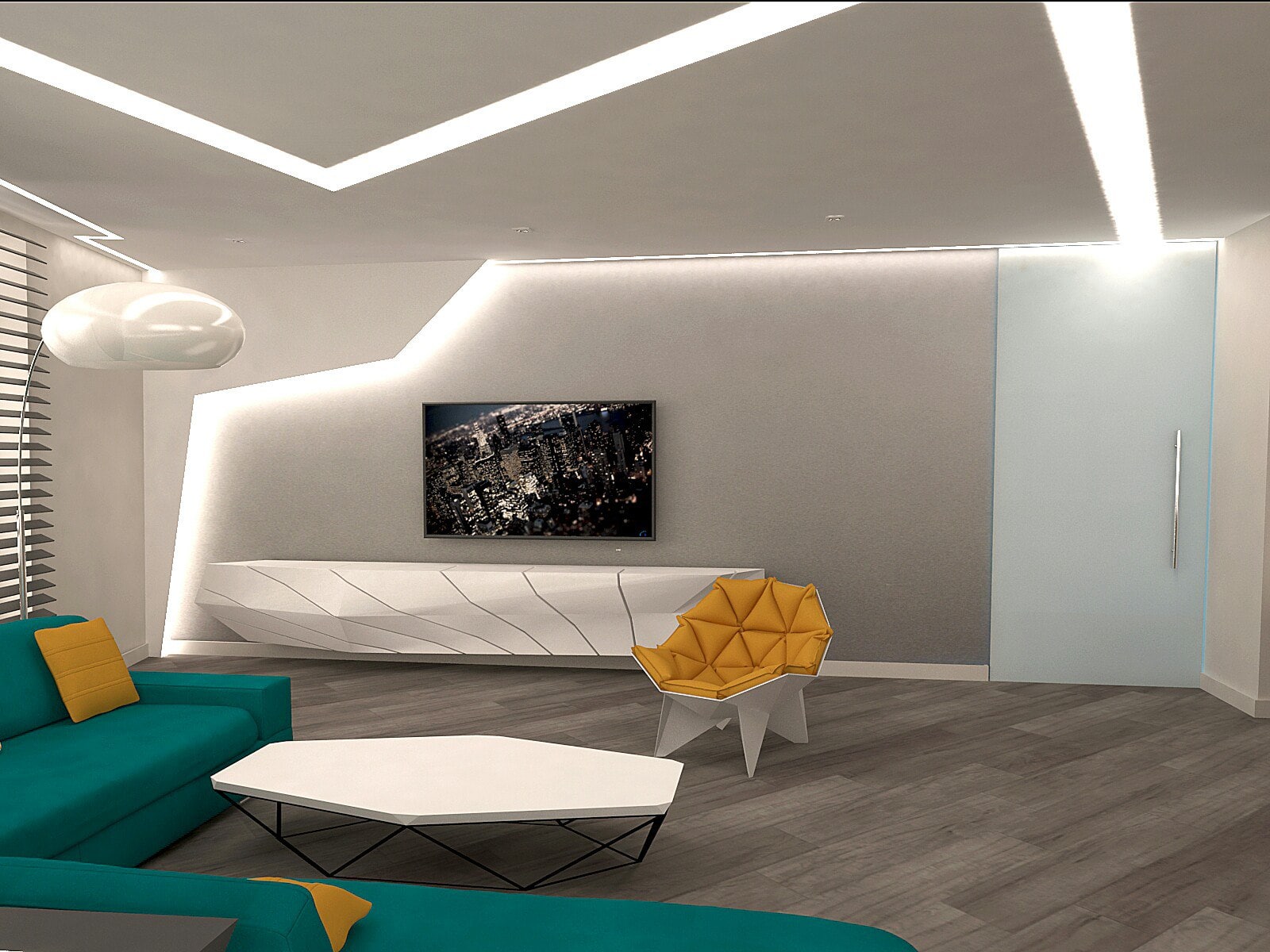 Formas inusuales. En la pintura interior presentaré figuras geométricas, líneas rectas y esquinas redondeadas y lisas;